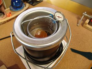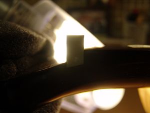- 7.そのまま数分間置いた後、ナイフを差し込んでいきます。接着剤が熱で軟化しているのがわかります。