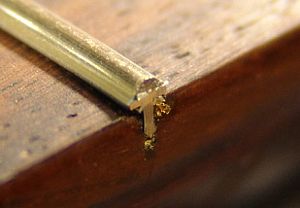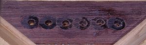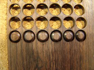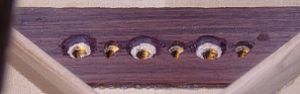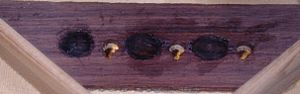 - 5.小穴があいたプラグです。まだ材に固定されています。