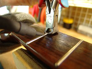 - 13.フレットをフィンガーボード幅よりも少し大きめに切り取ります。