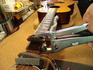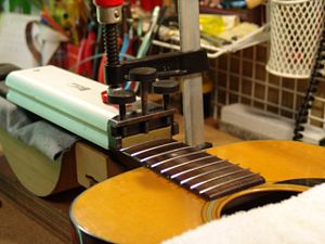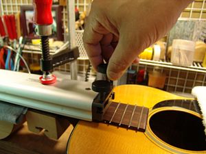 - 12.フレットベンダーでフレットにアールをつけていきます。