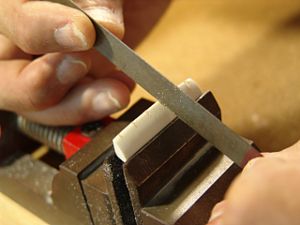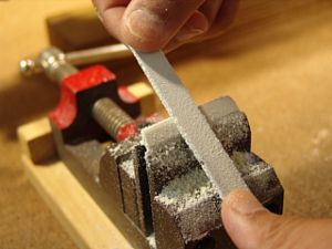 - 19.弦溝を専用のヤスリで彫り込んでいきます。