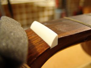 - 25.他の弦も同じ要領で調整しました。弦高調整後のナットです。