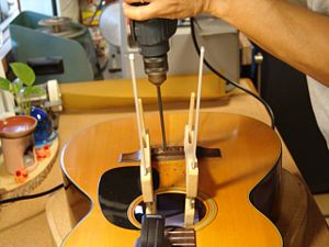 - 19.1,3,5弦のプラグ固着後、同じように2,4,6弦のプラグ接着を行います。