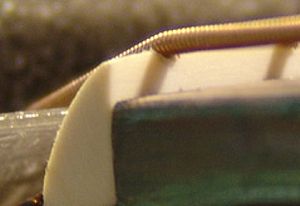 - 3. ナットを取り外したナット溝です。古い接着剤の跡が薄く残っています。