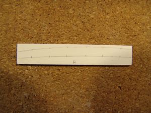 - 35.直定規を乗せて、フレット山が凹んでいる箇所にマークを入れます。