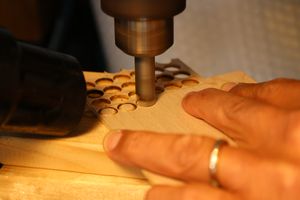 - 13.さらにミニルーターで弦の導出角度をつけていきます。