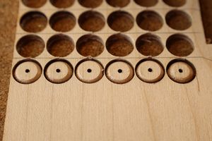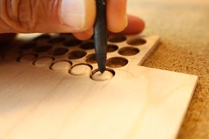 - 5.小穴があいたプラグです。まだ材に固定されています。