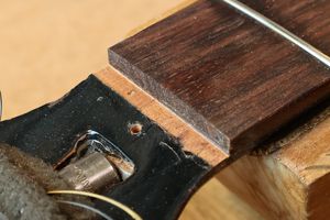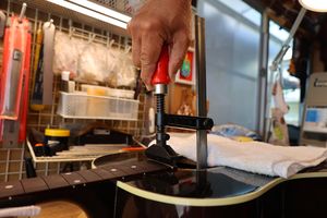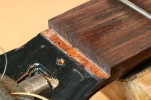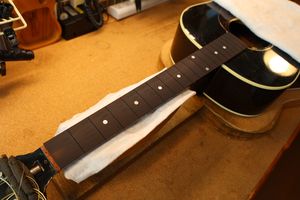 - 12.目視および指で触ってネック、フィンガーボードと段差のないことを確認しておきます。