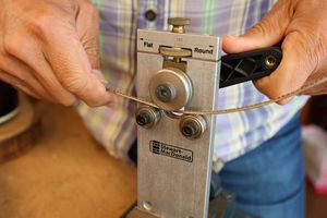 - 9.フレットベンダーでフレットにアールをつけていきます。