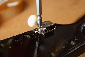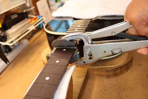 - 17.ネジを締めてフレットをプレスしていきます。