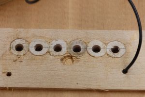 - 19.1,3,5弦のプラグ固着後、同じように2,4,6弦のプラグ接着を行います。