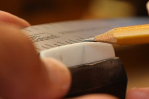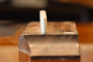 - 18.弦溝位置を新しいナットに書き込みます。