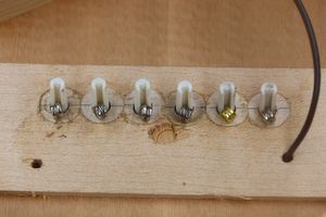 - 17.1,3,5弦のプラグ固定が終わりました。このとき木目方向を確認しておきます。