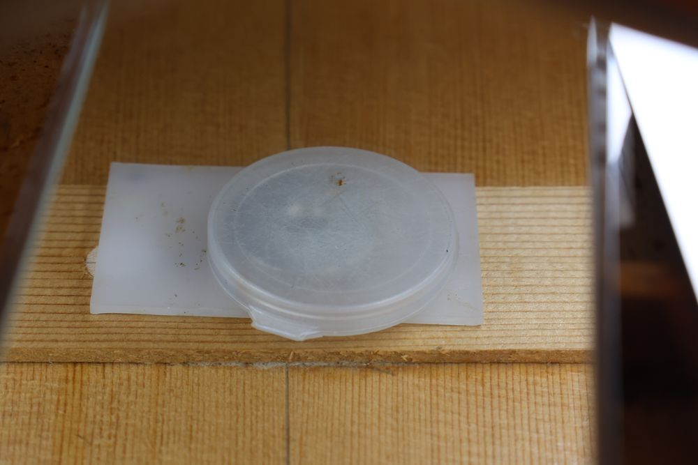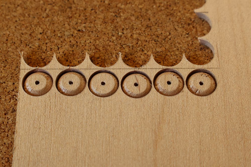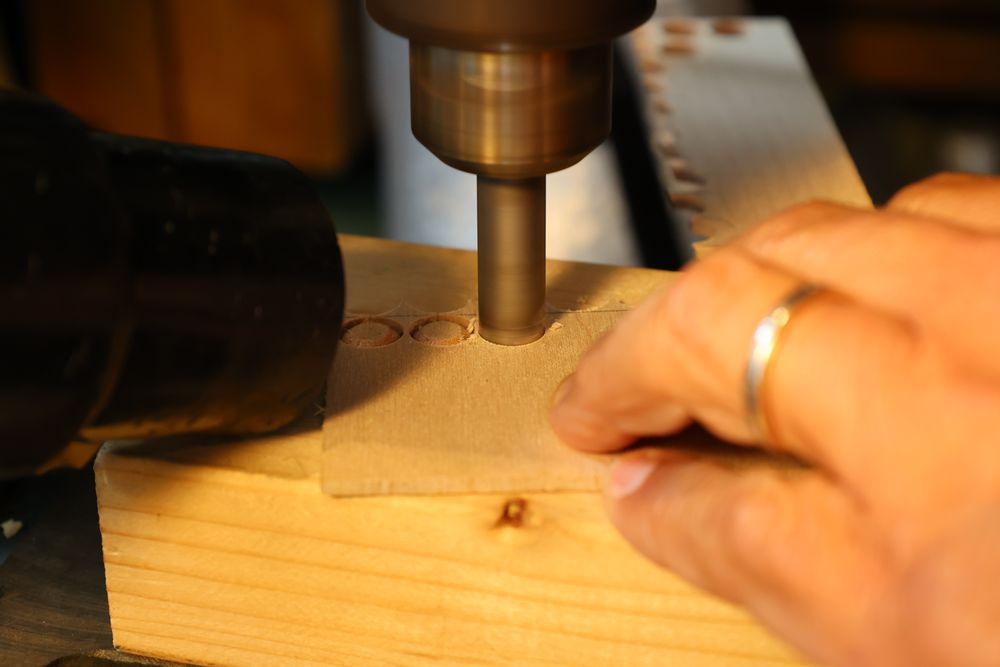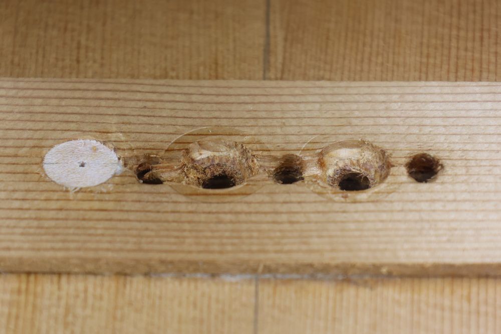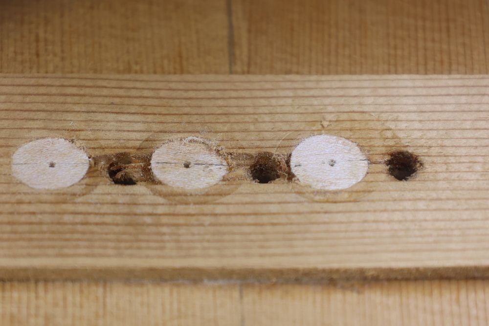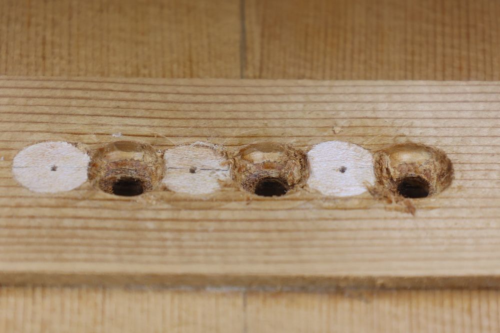 - 5.小穴があいたプラグです。まだ材に固定されています。