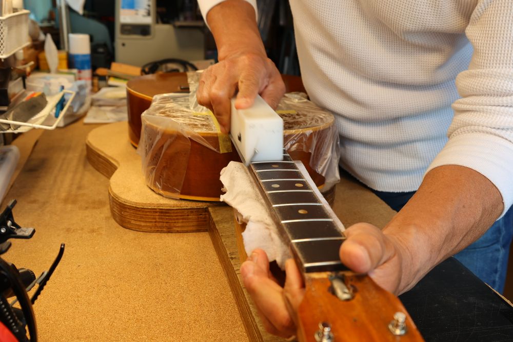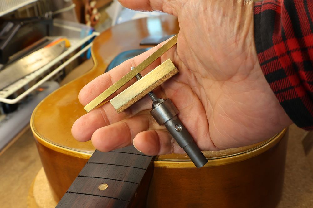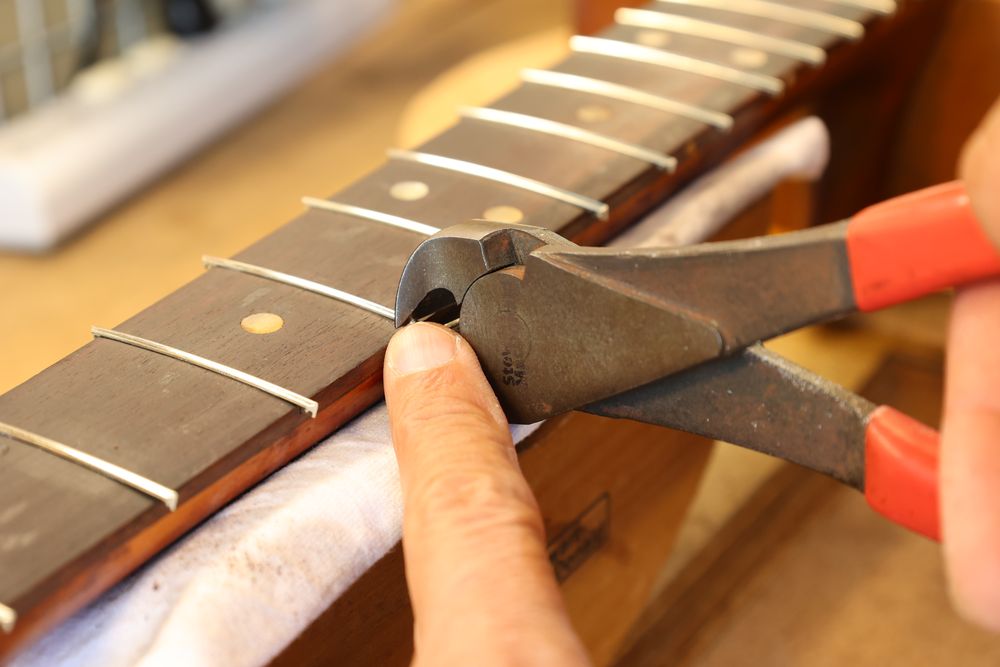 - 25.専用のヤスリを使ってフレット端を整形します。