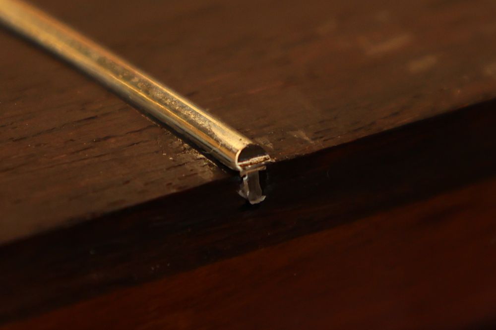 - 21.打ち込み終わったフレットの端は飛び出ています。