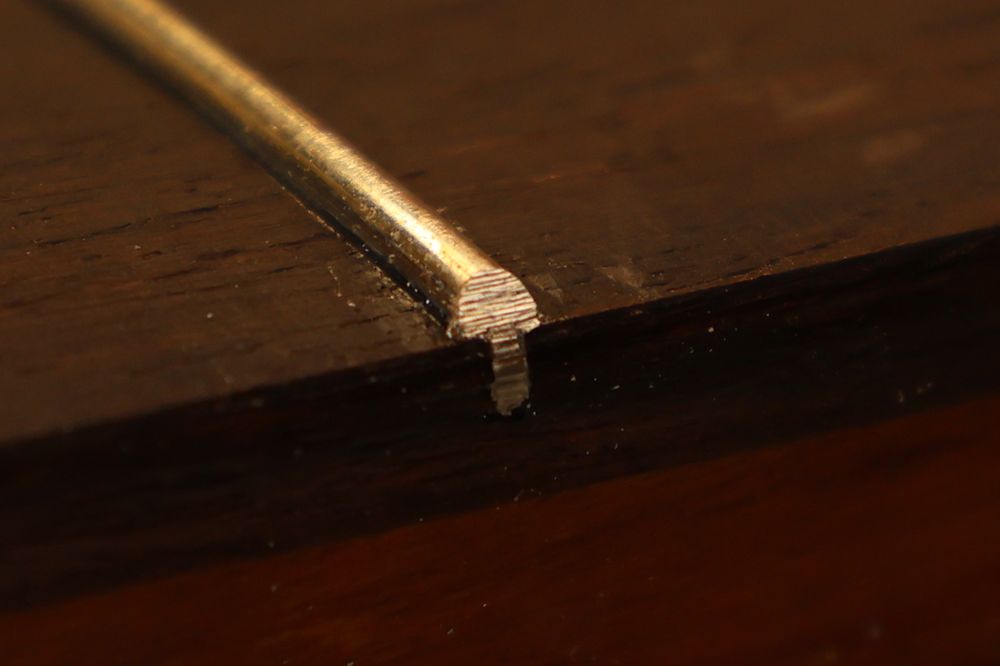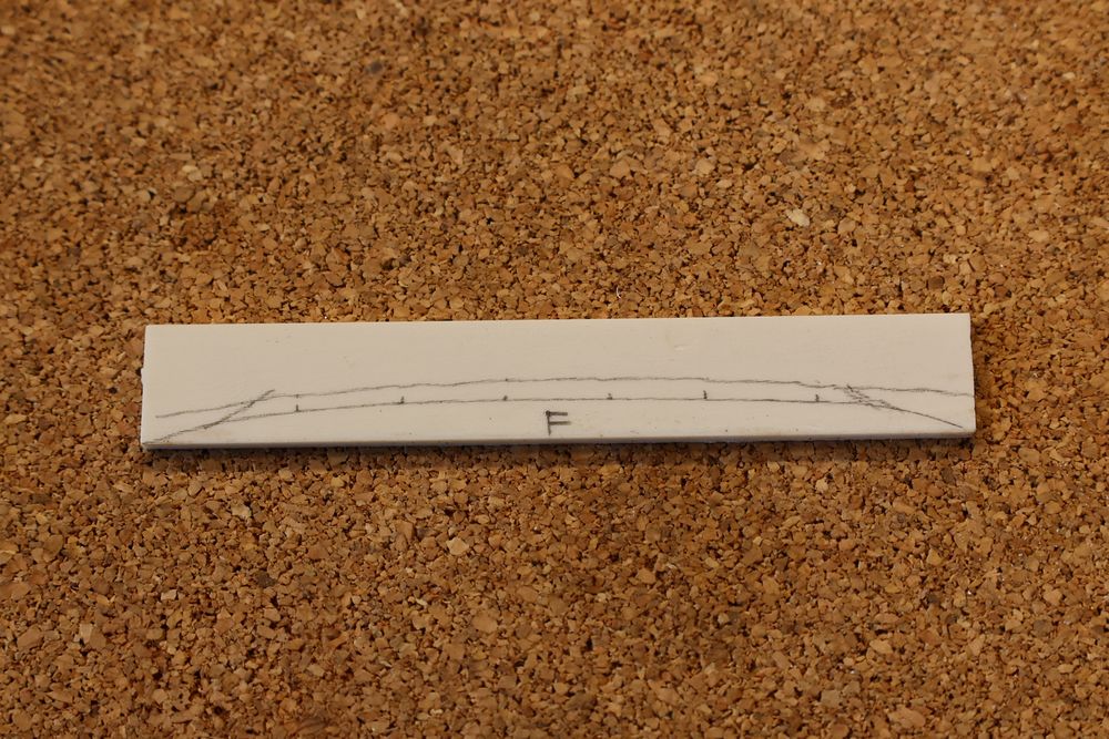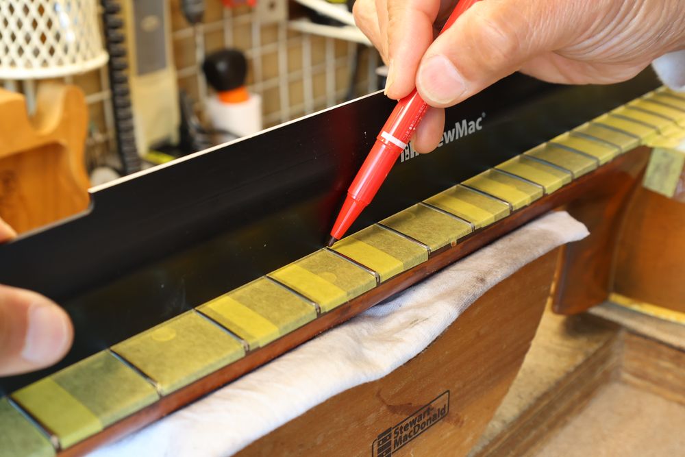 - 13.フレットの高さに合わせてケガキ線を入れます。