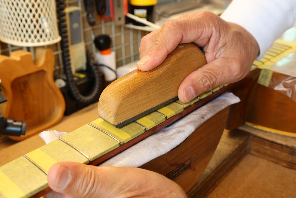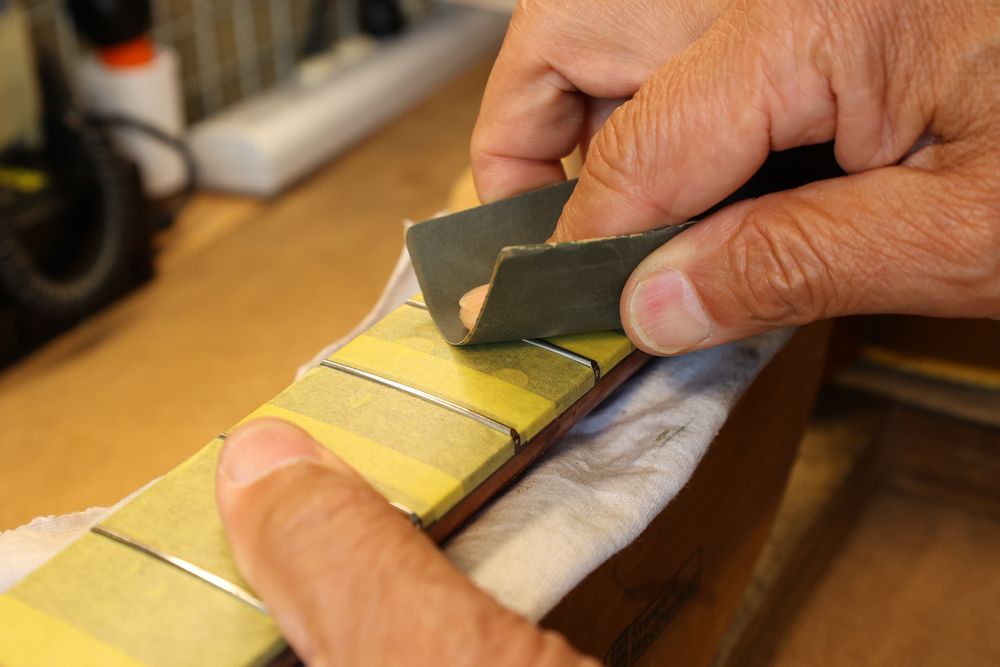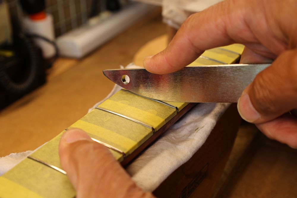 - 33.平らになったフレット山を専用のヤスリで丸くしていきます。