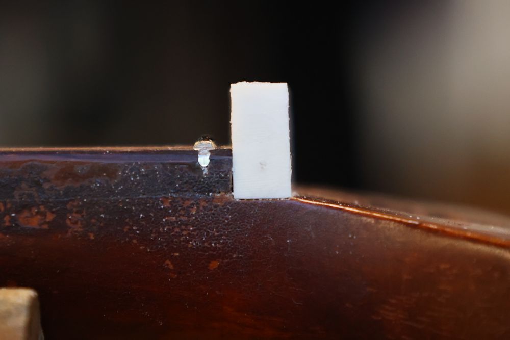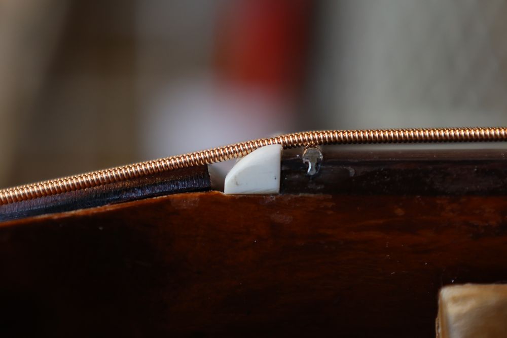 - 24.弦を張りました。エンドポールがプレートの上にしっかり固定されています。