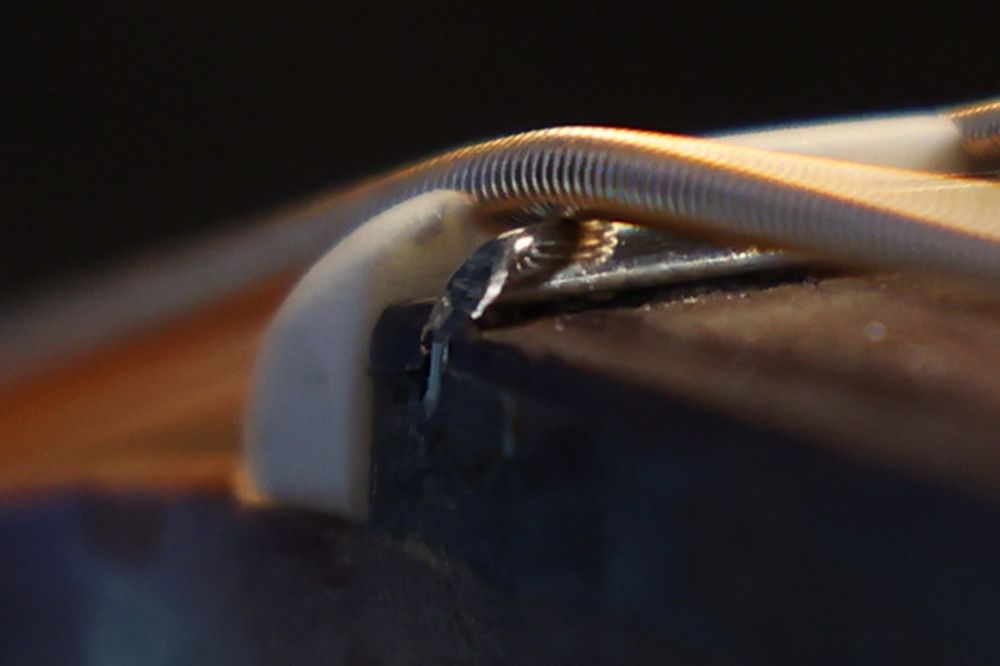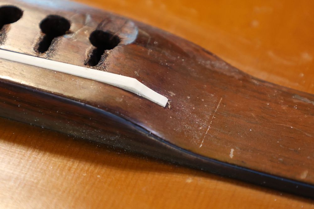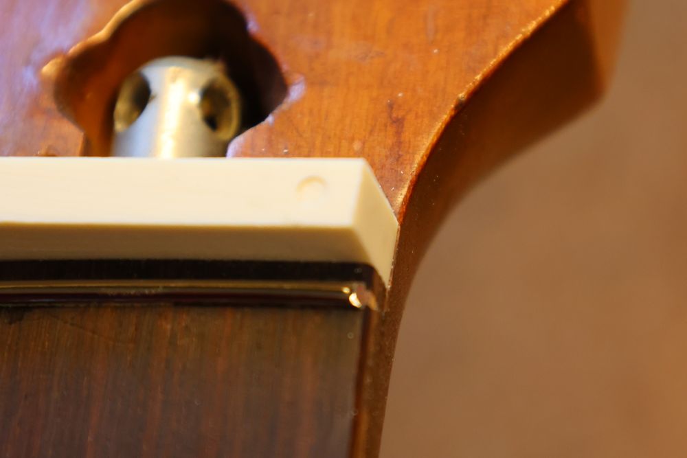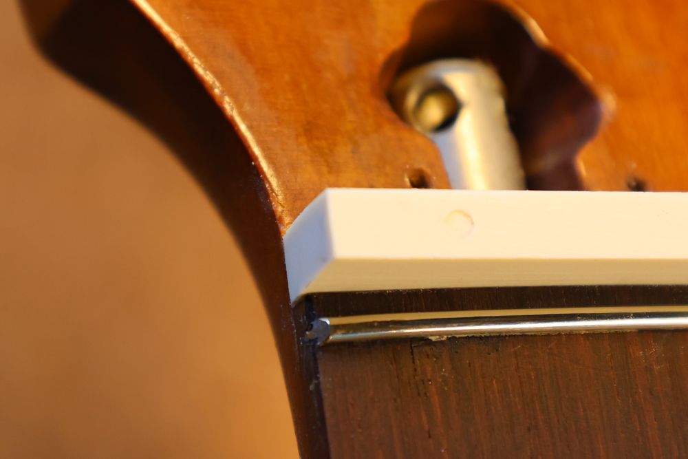 - 5.クリーニング完了したナット溝です。ナットが溝と直接触れることによってギターの音色の改善が期待できます。