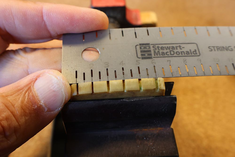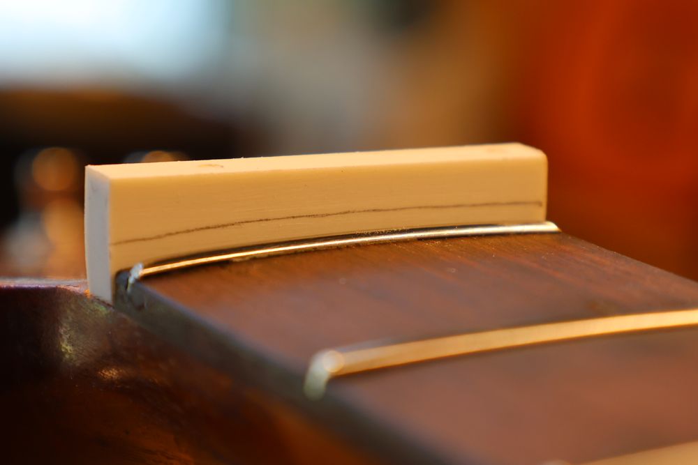 - 25.他の弦も同じ要領で調整しました。弦高調整後のナットです。