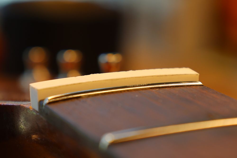 - 26.ナットと弦の接触面積と角度を最適化することによってギターの音色は大きく変わります。