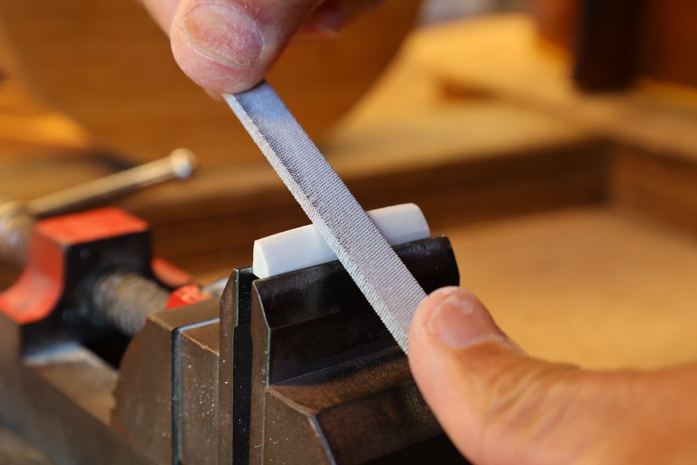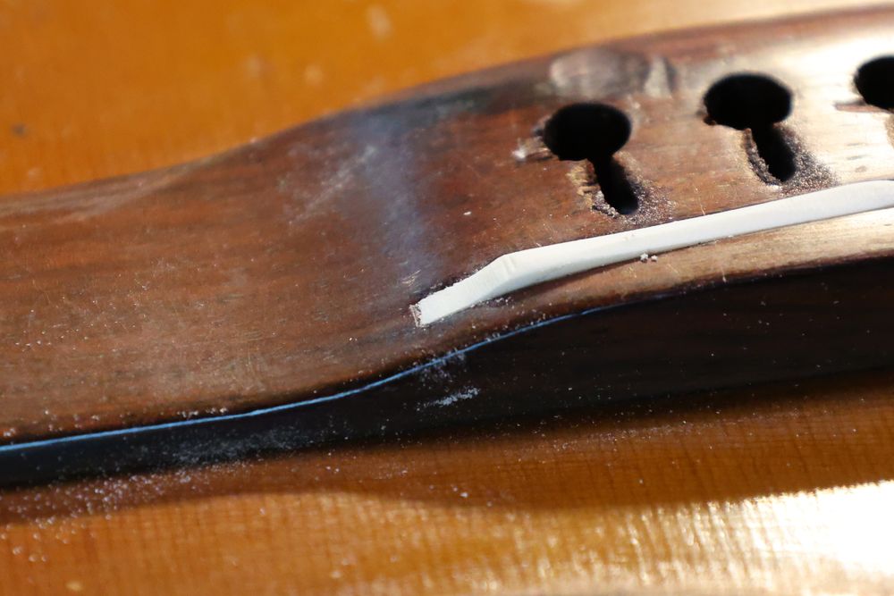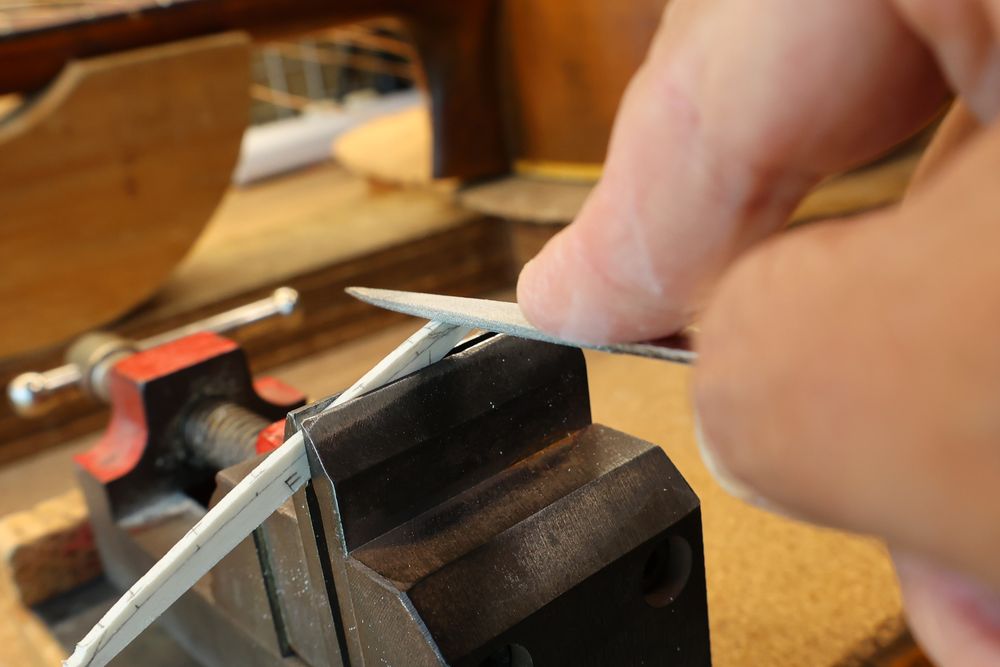 - 19.弦溝を専用のヤスリで彫り込んでいきます。