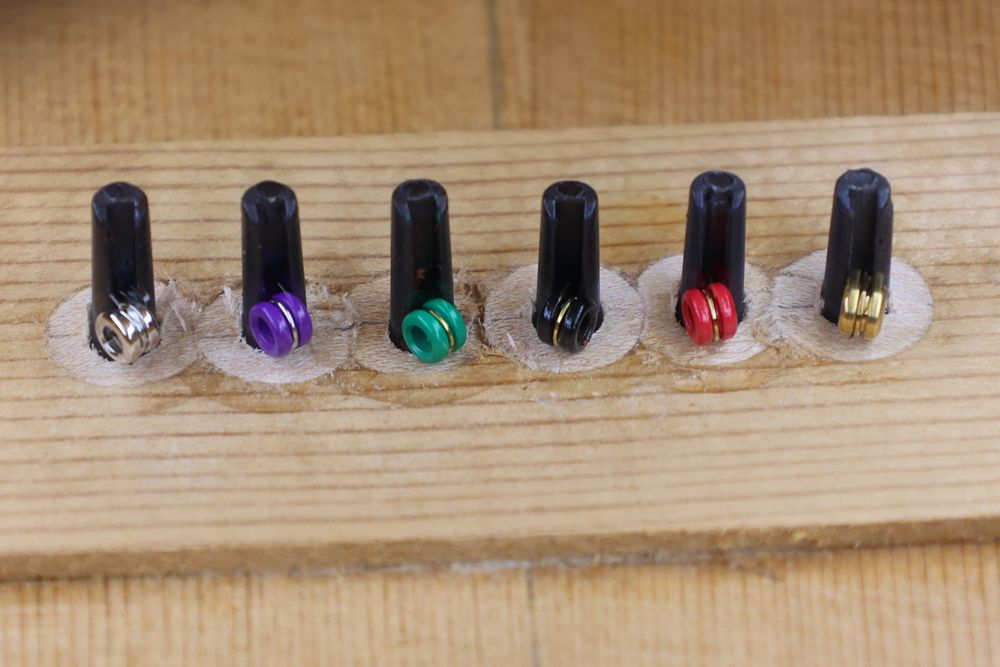 - 19.1,3,5弦のプラグ固着後、同じように2,4,6弦のプラグ接着を行います。