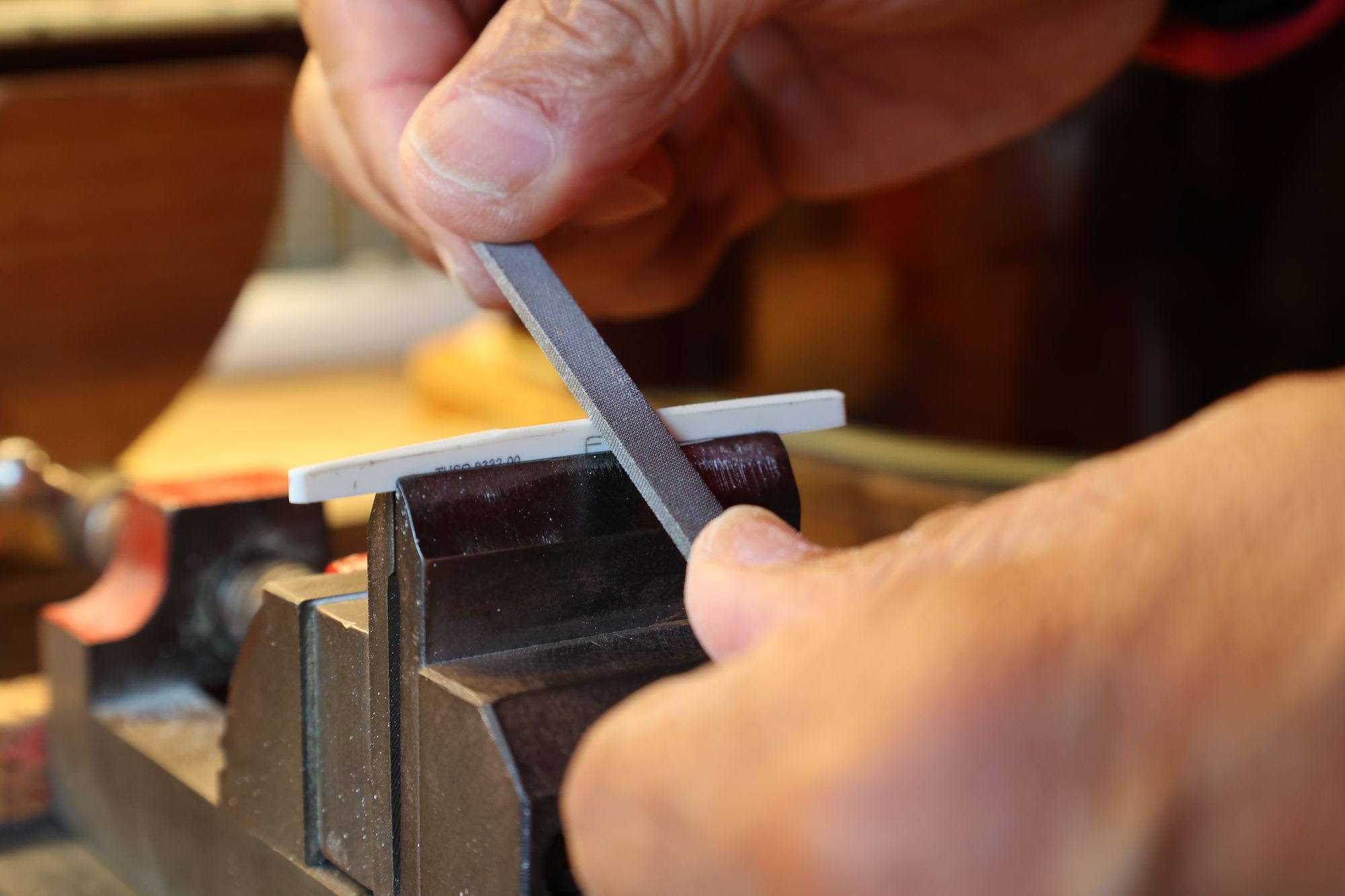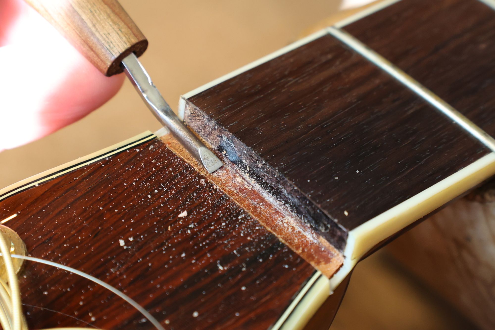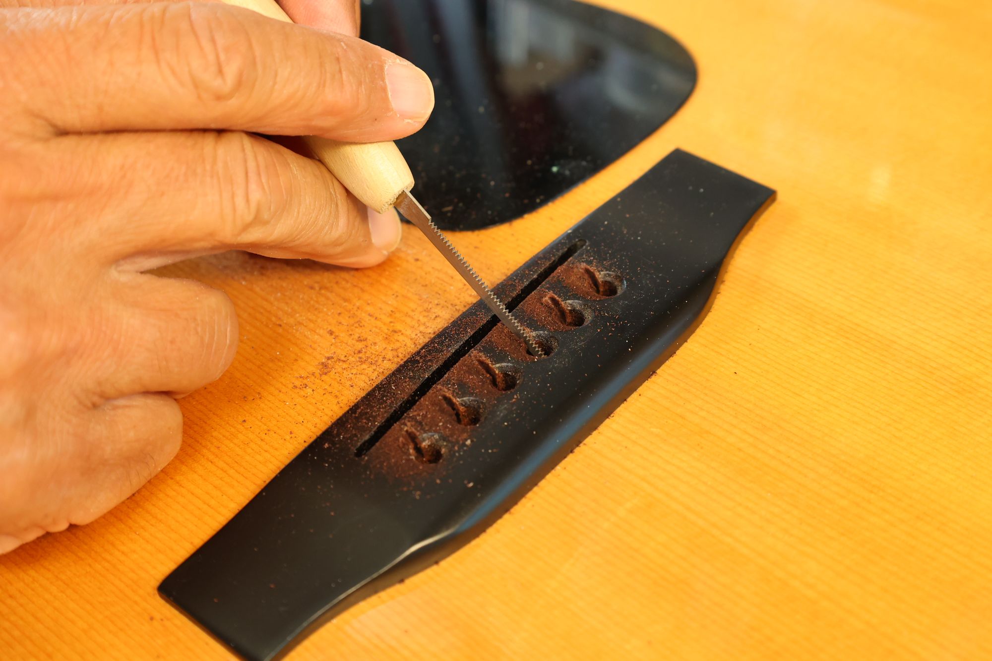 - 19.弦溝を専用のヤスリで彫り込んでいきます。