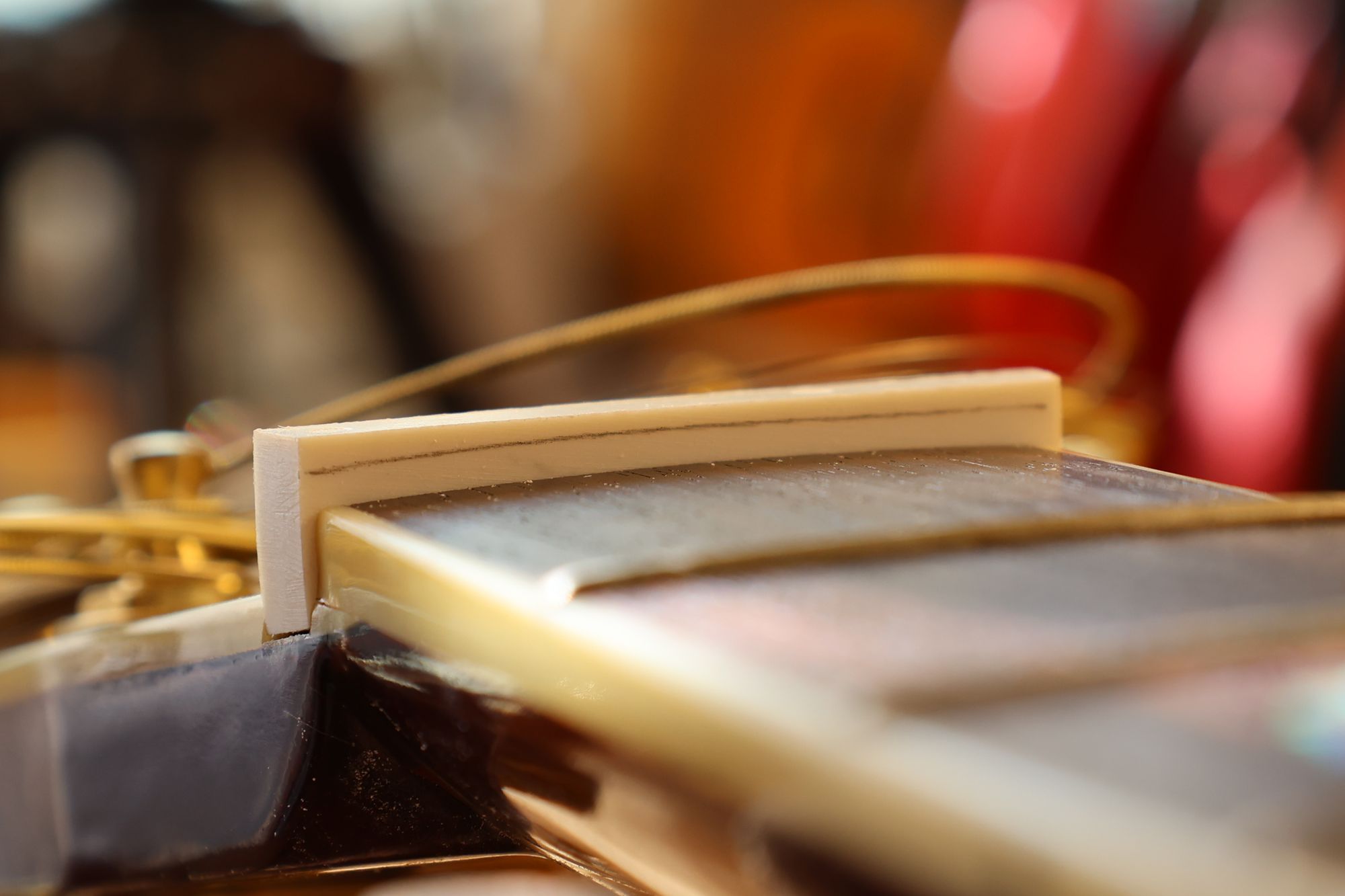 - 26.ナットと弦の接触面積と角度を最適化することによってギターの音色は大きく変わります。