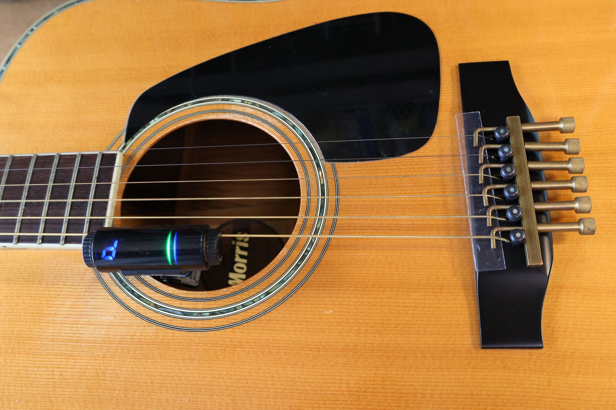 戻る大阪府にお住まいのT.S.さんからMorris TF-801のリペアご依頼をいただき,弦周りのTUSQ化を行いました。