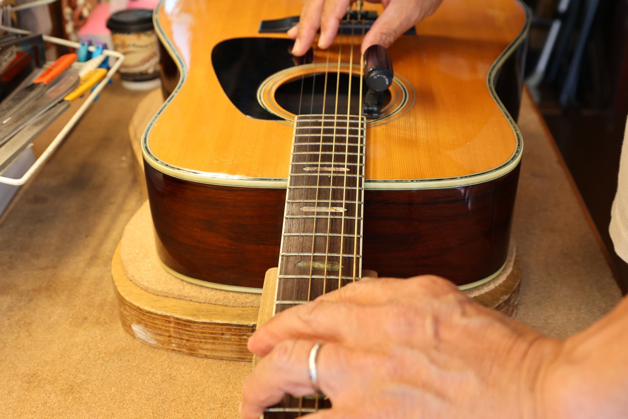 T.S.さんが約40年前に初めて購入されたギターとのことで、プチリフレッシュをしたギターもきっと喜んでいるのではないかと思います。