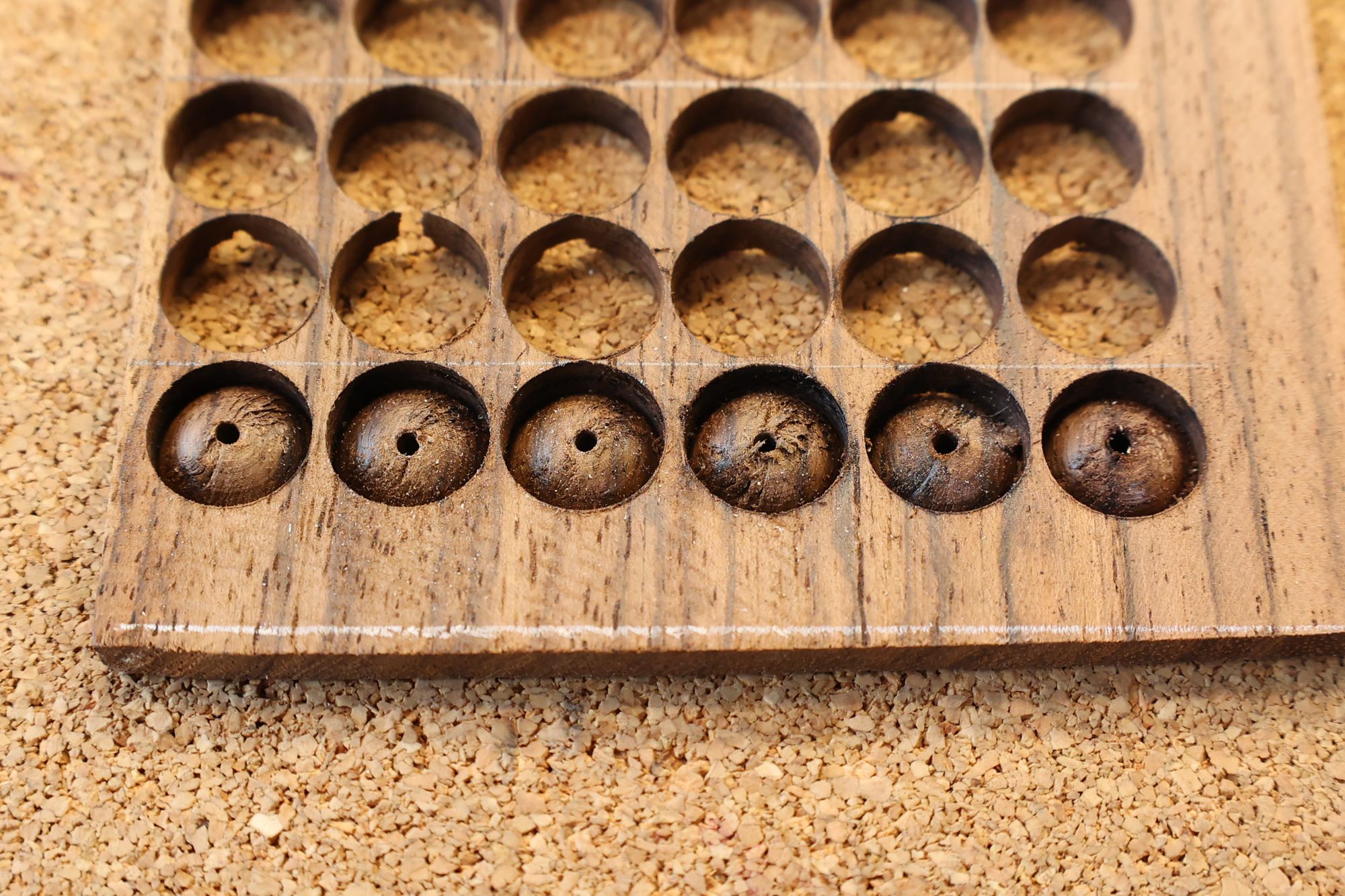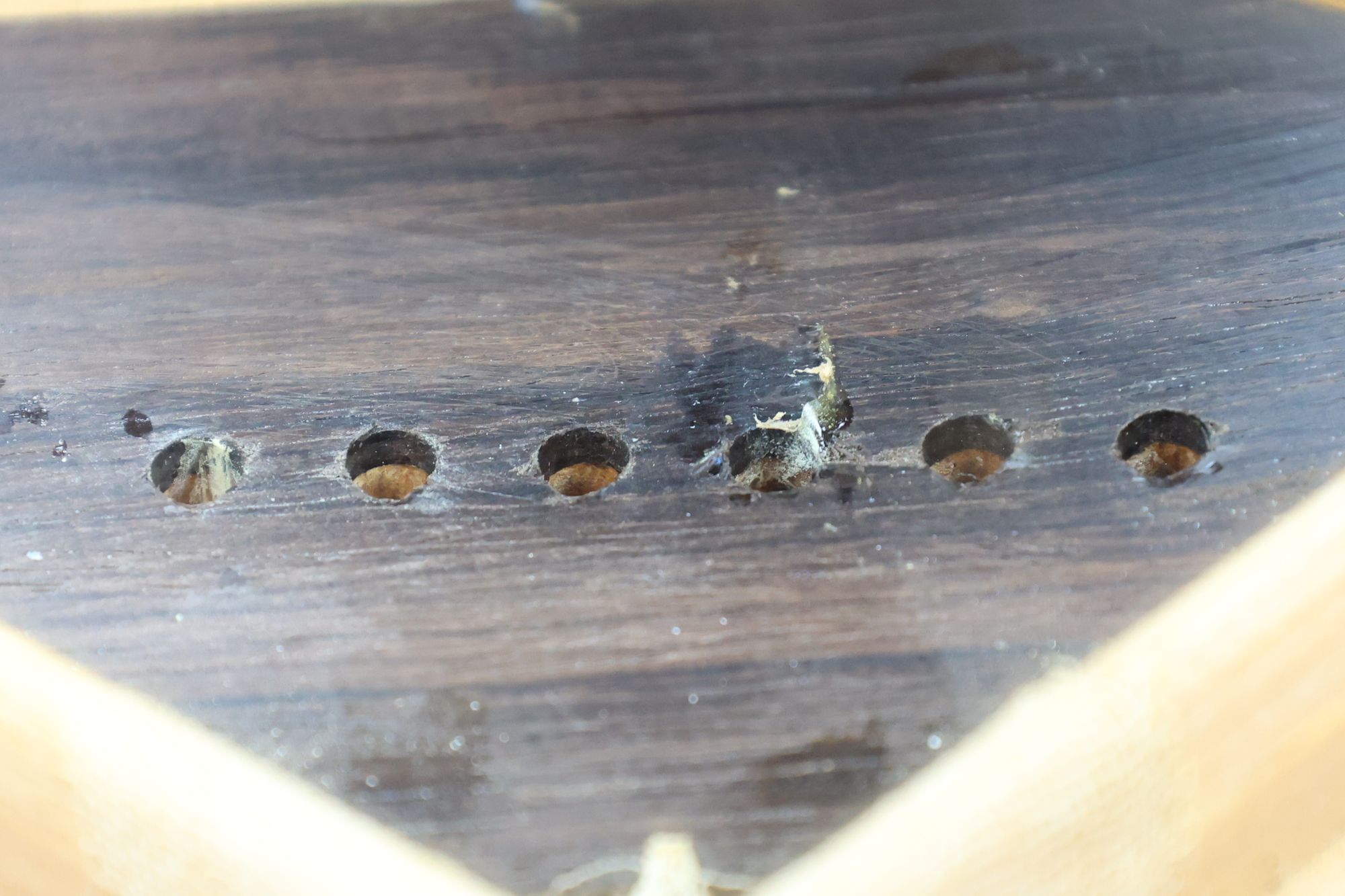 - 5.小穴があいたプラグです。まだ材に固定されています。