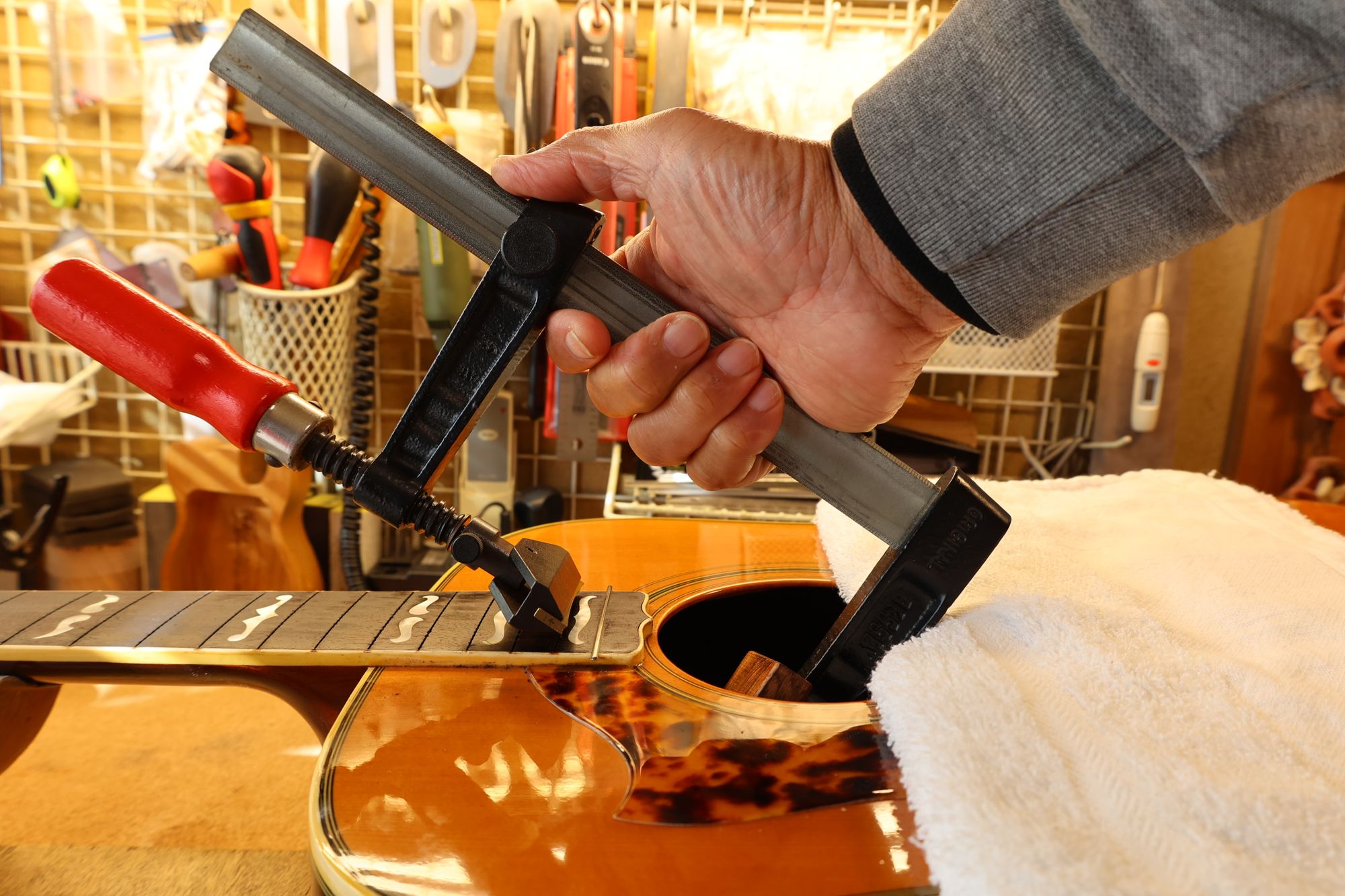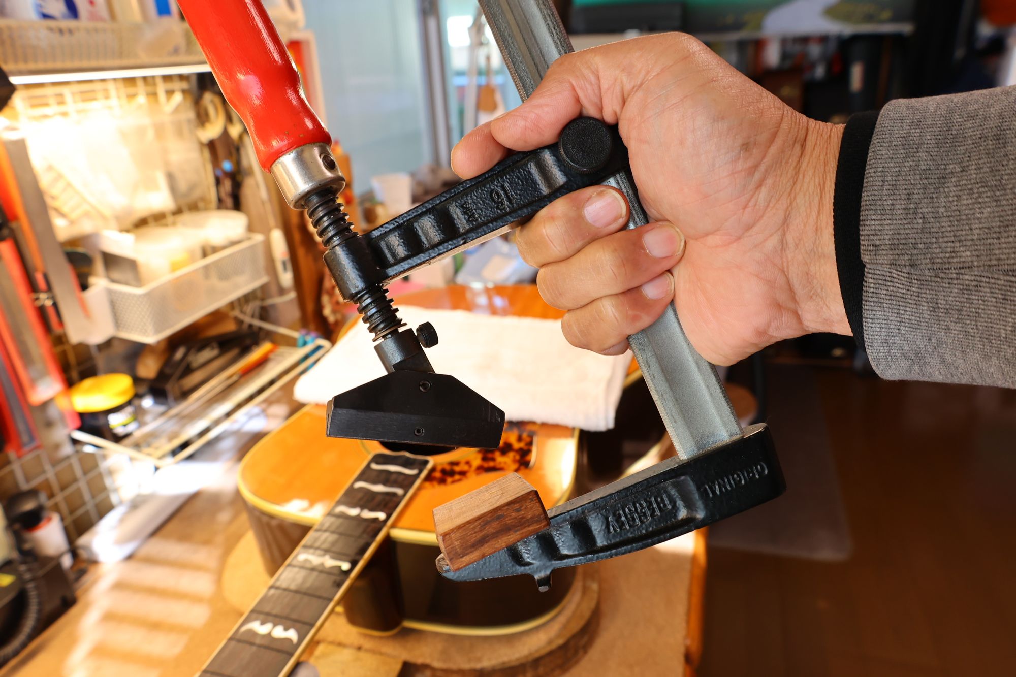 - 7.フレットプレスの準備が整いました。