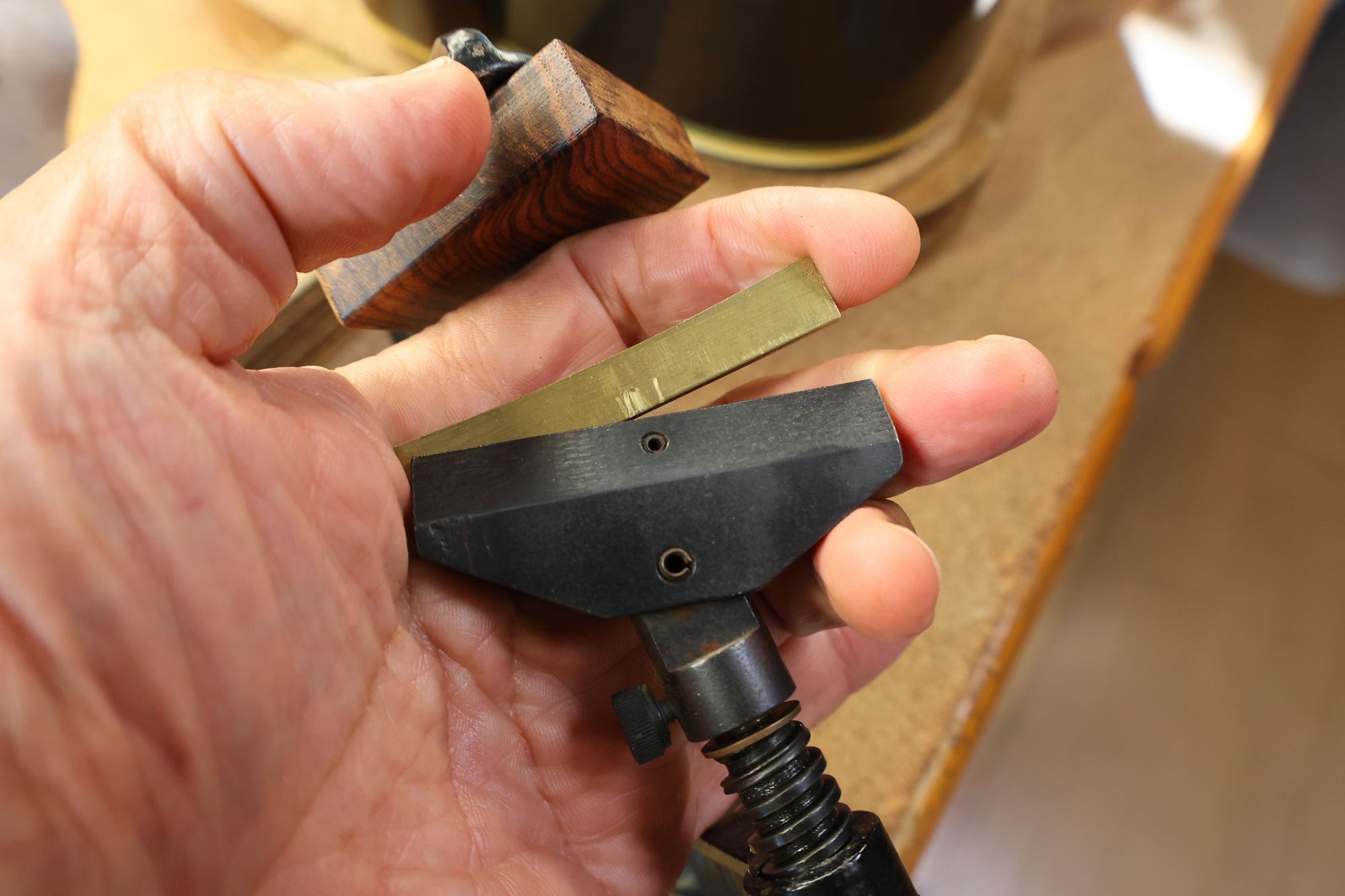 - 9.ブリッジ表面のハンドルを回して、カッターを回転させ、ブリッジプレートの凹み加工を行います。