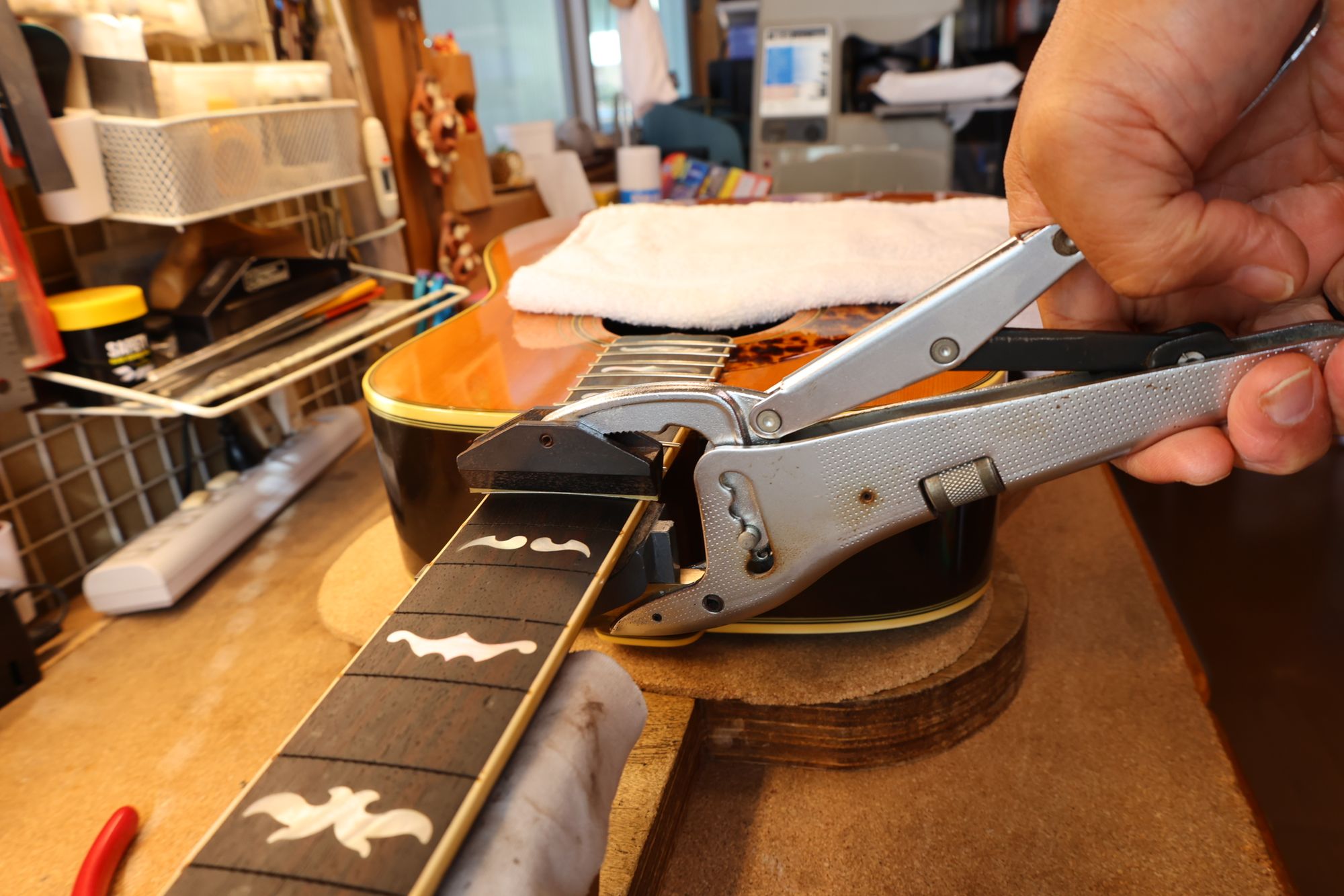 - フレットを抜いている様子です