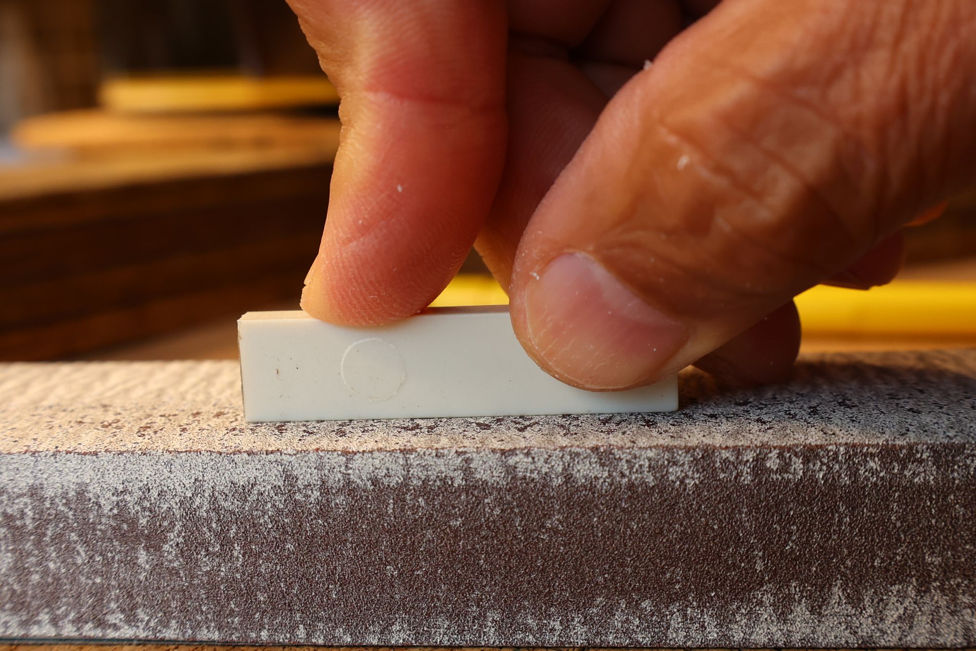 - 17.弦溝を専用のヤスリで彫り込んでいきます。