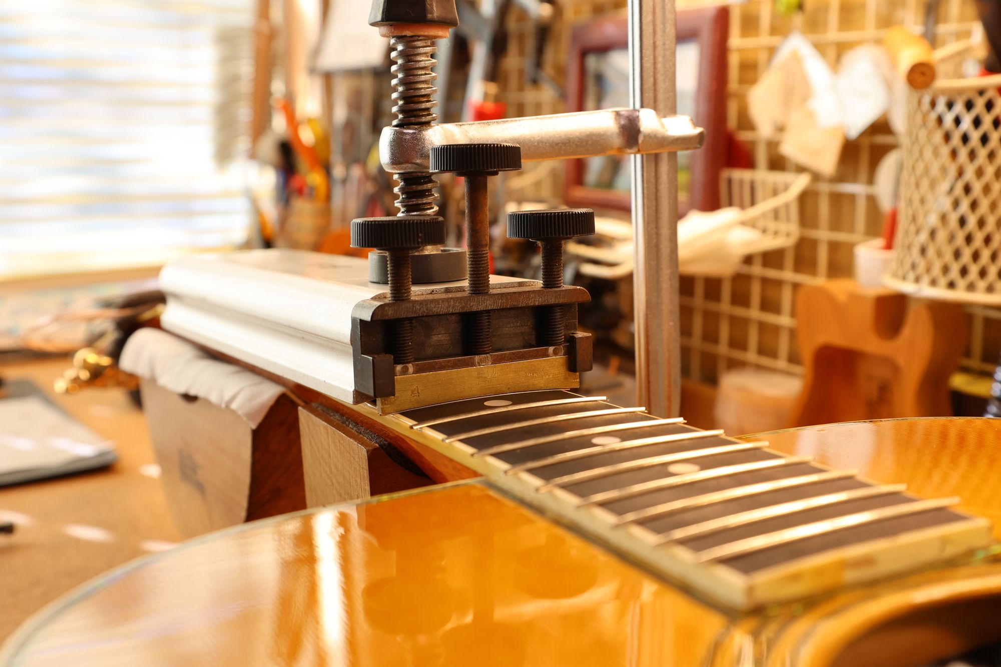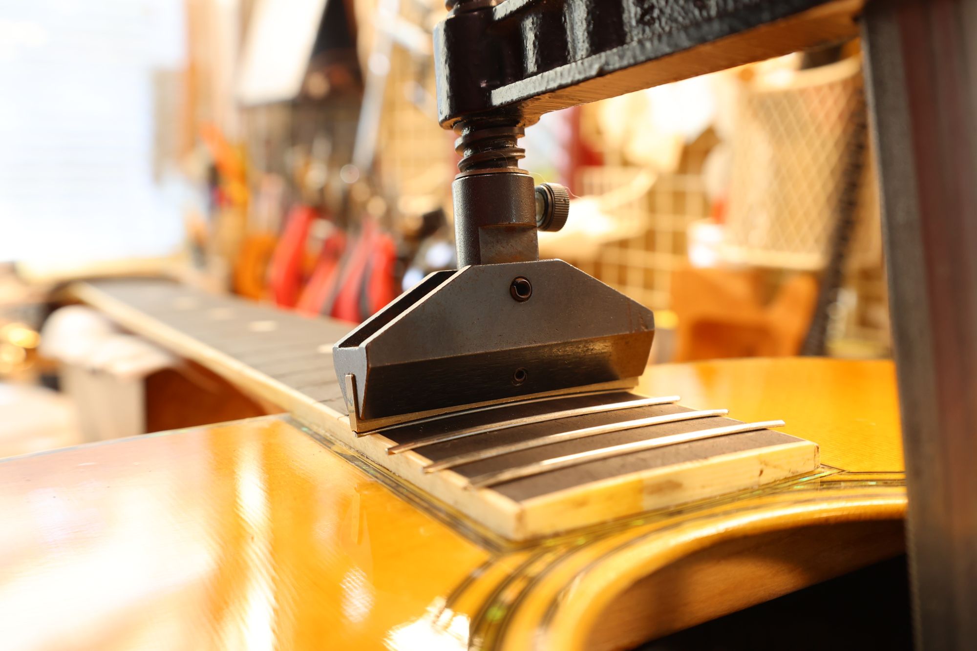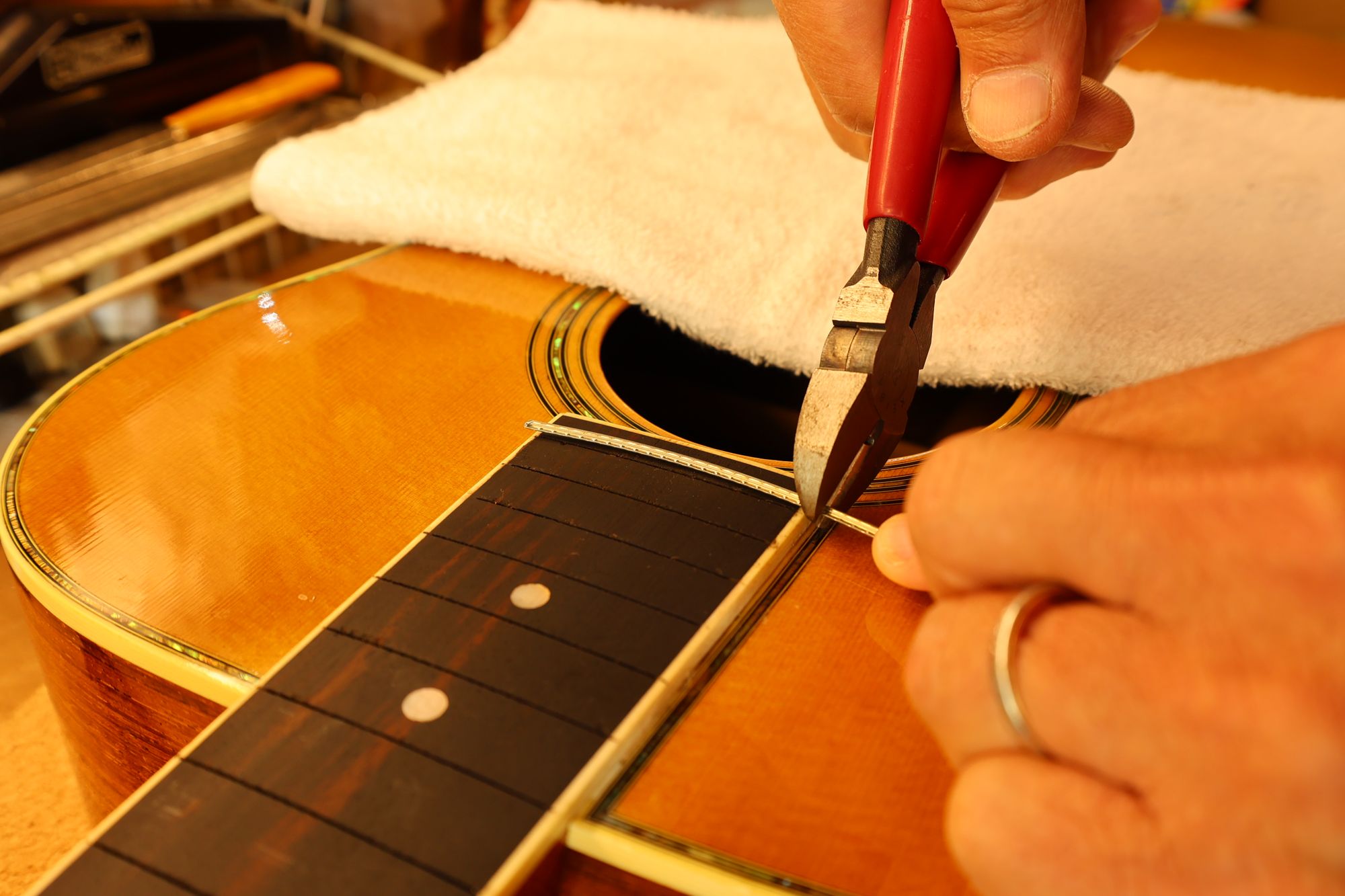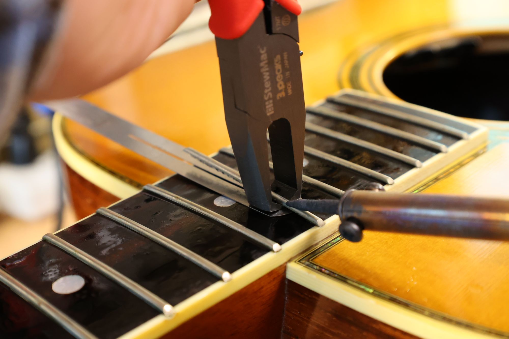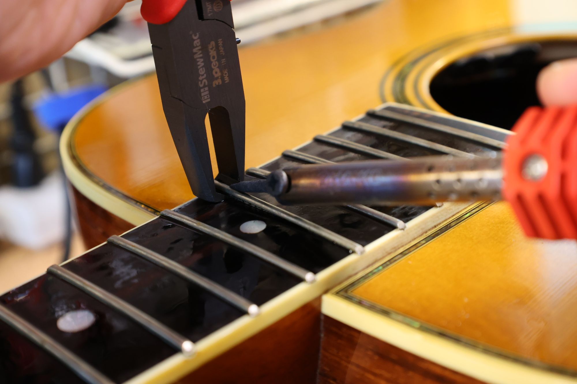 - 31.専用のヤスリを使ってフレット端を整形します。