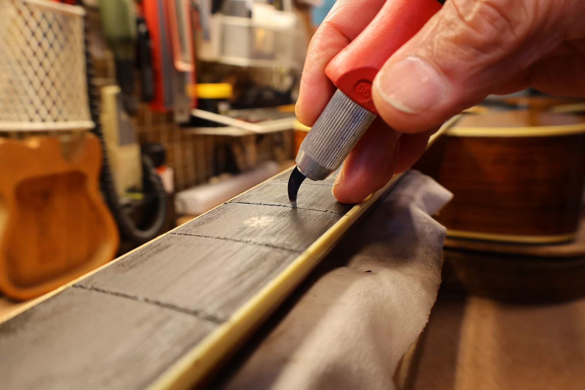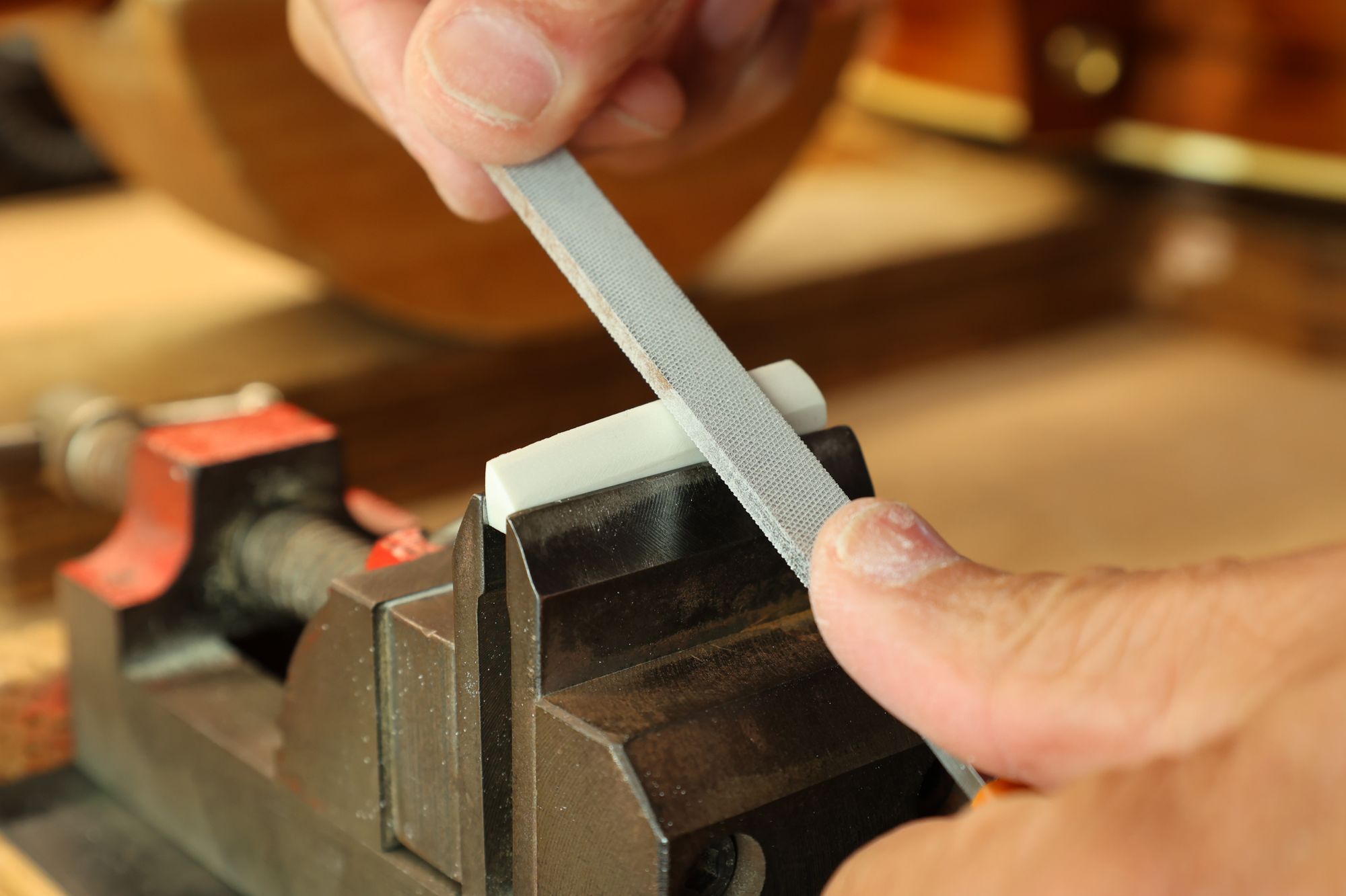- 19.弦溝を専用のヤスリで彫り込んでいきます。