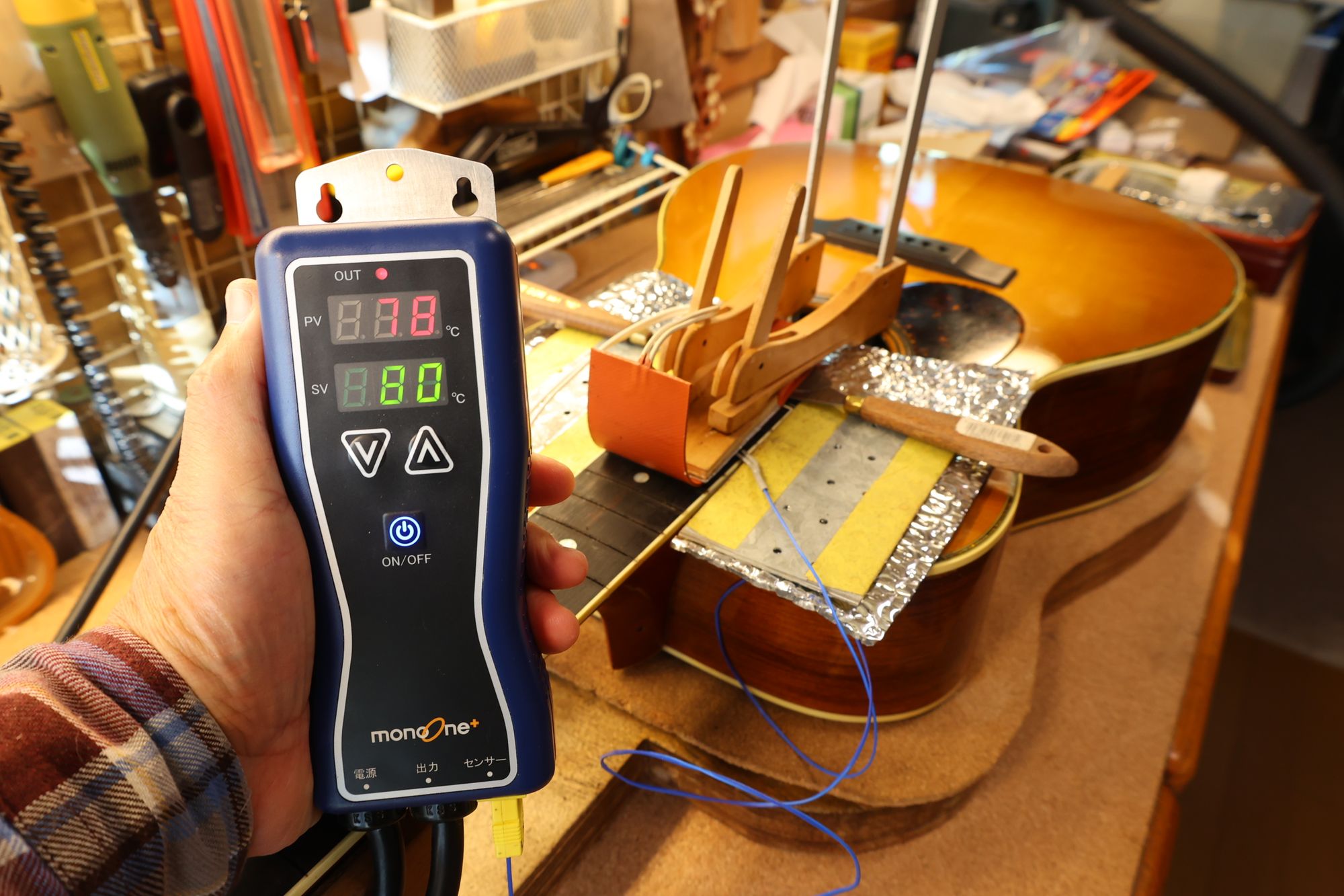 - 6.ヒーターに通電します。フィンガーボードの温度をモニタしながら徐々に温度を上げていきます。