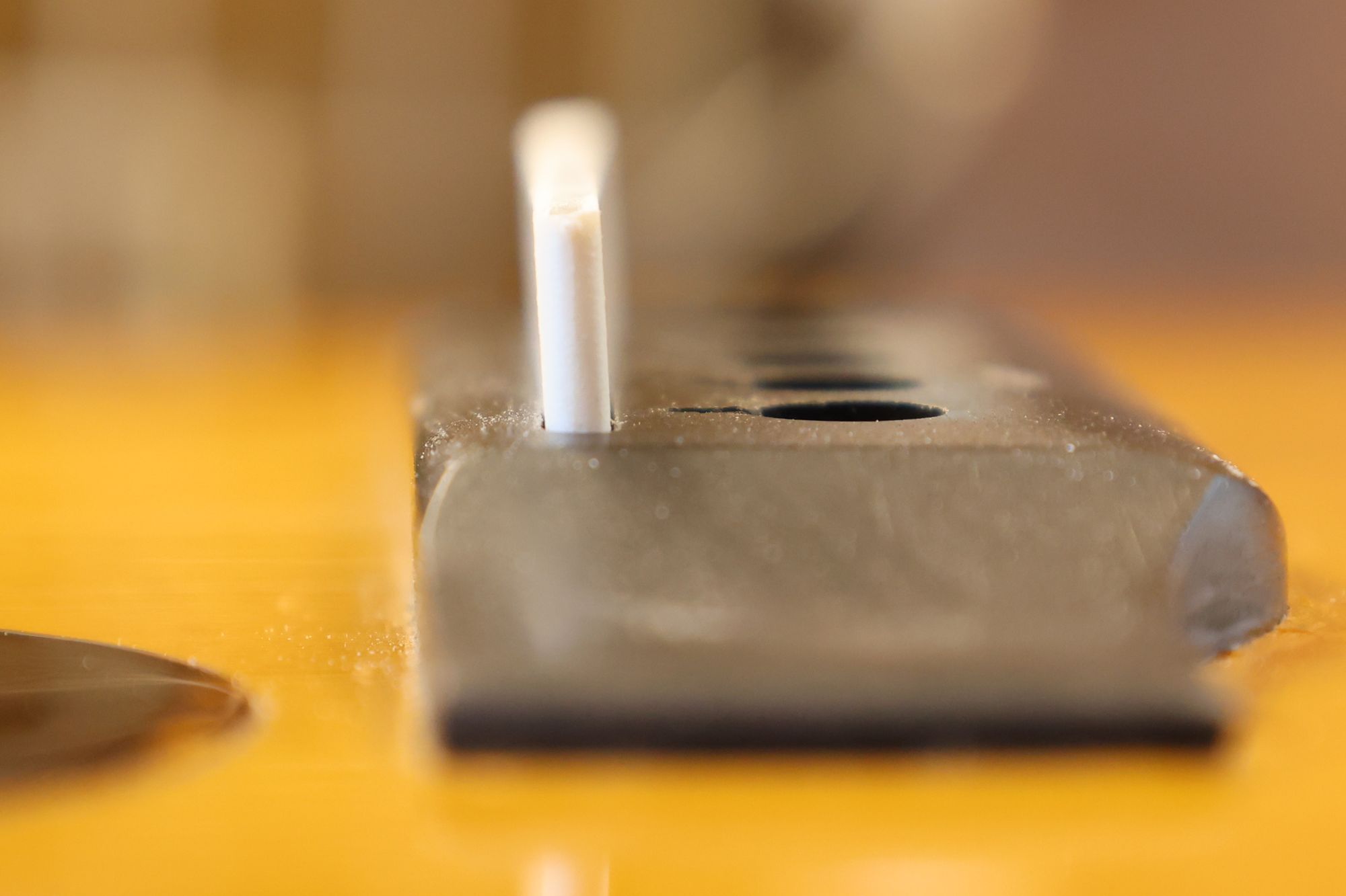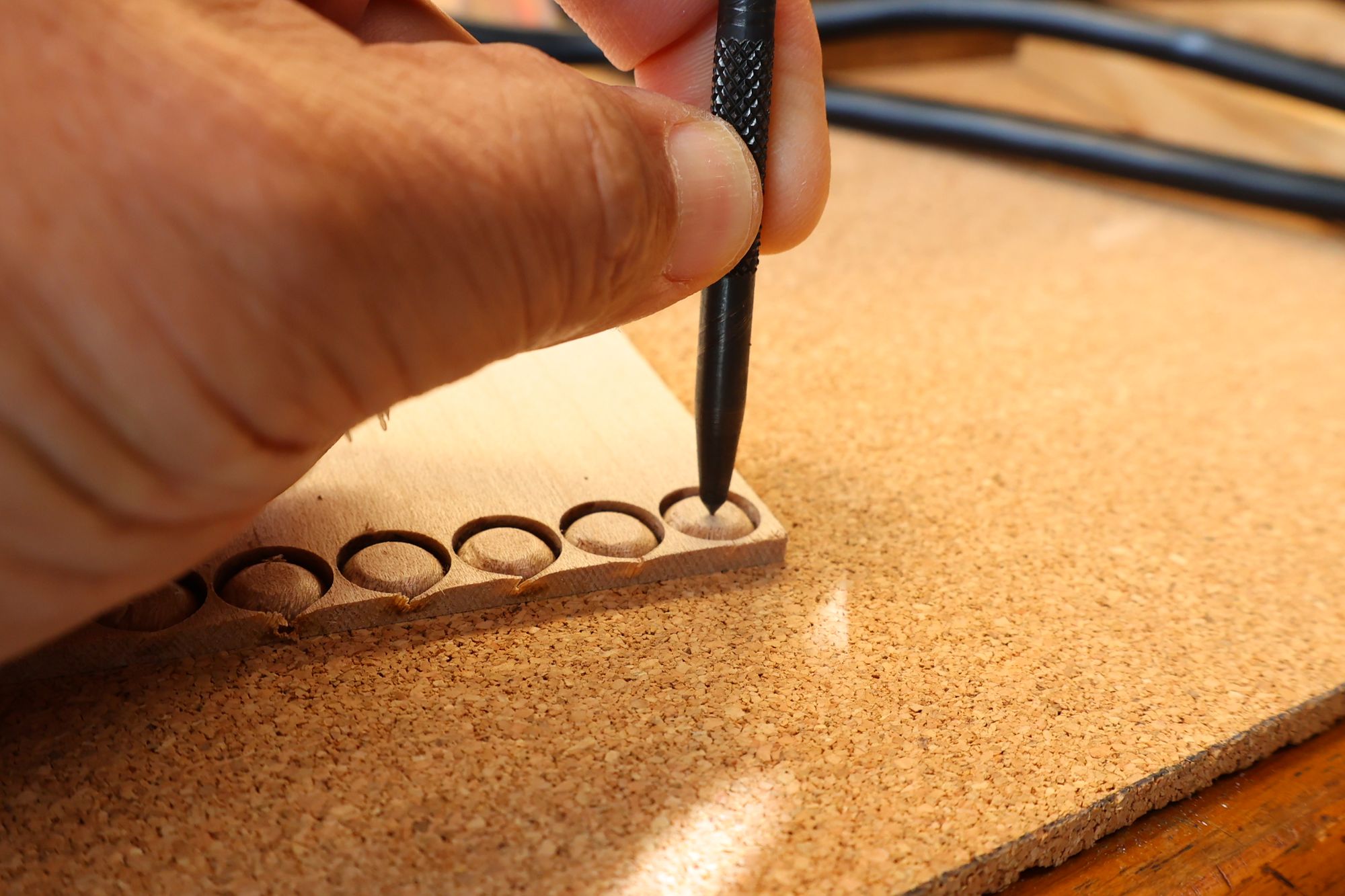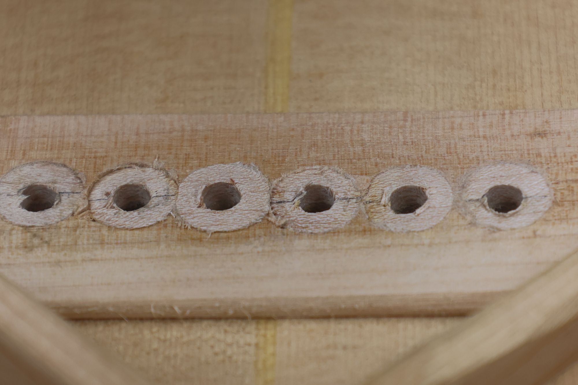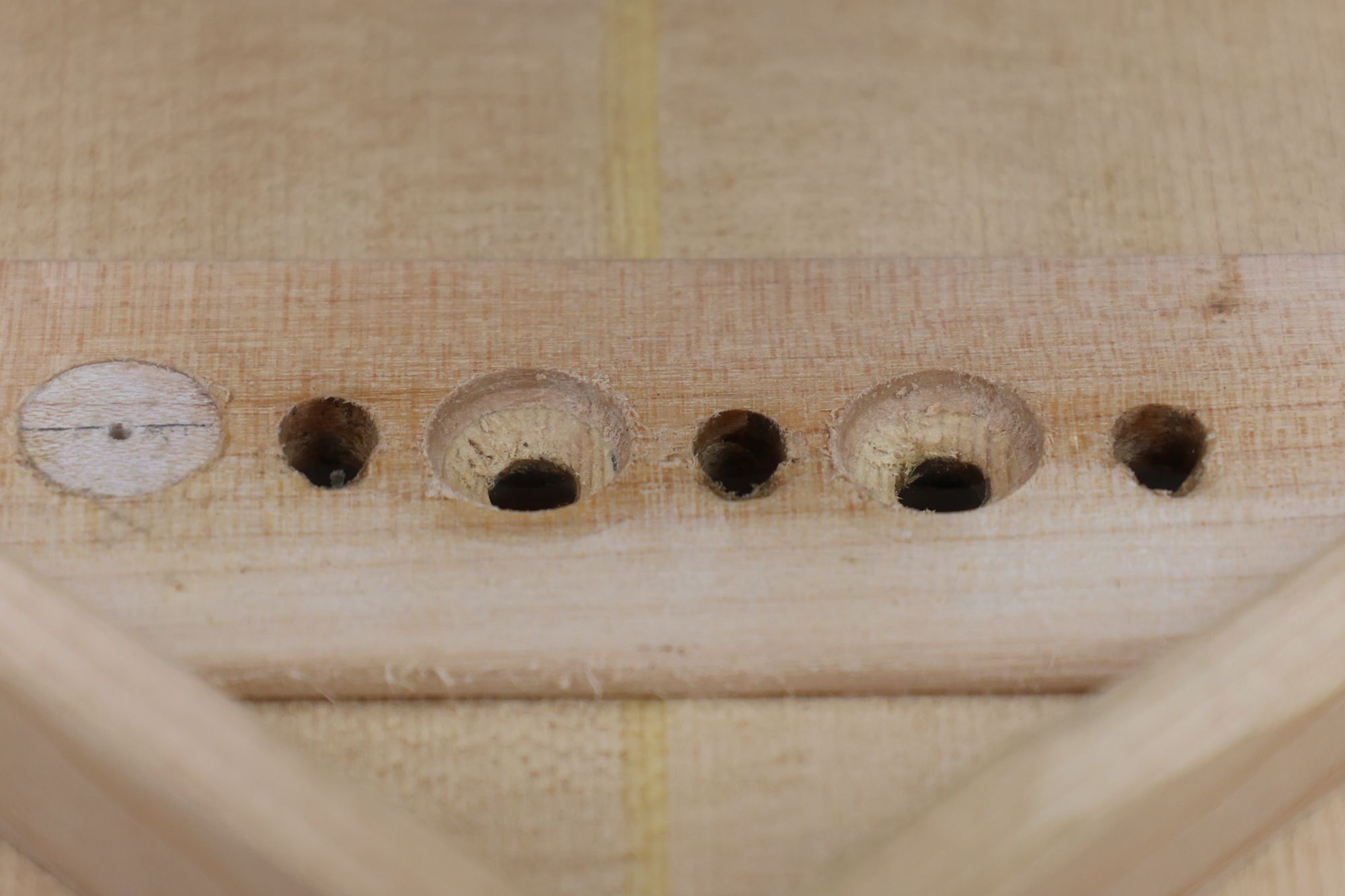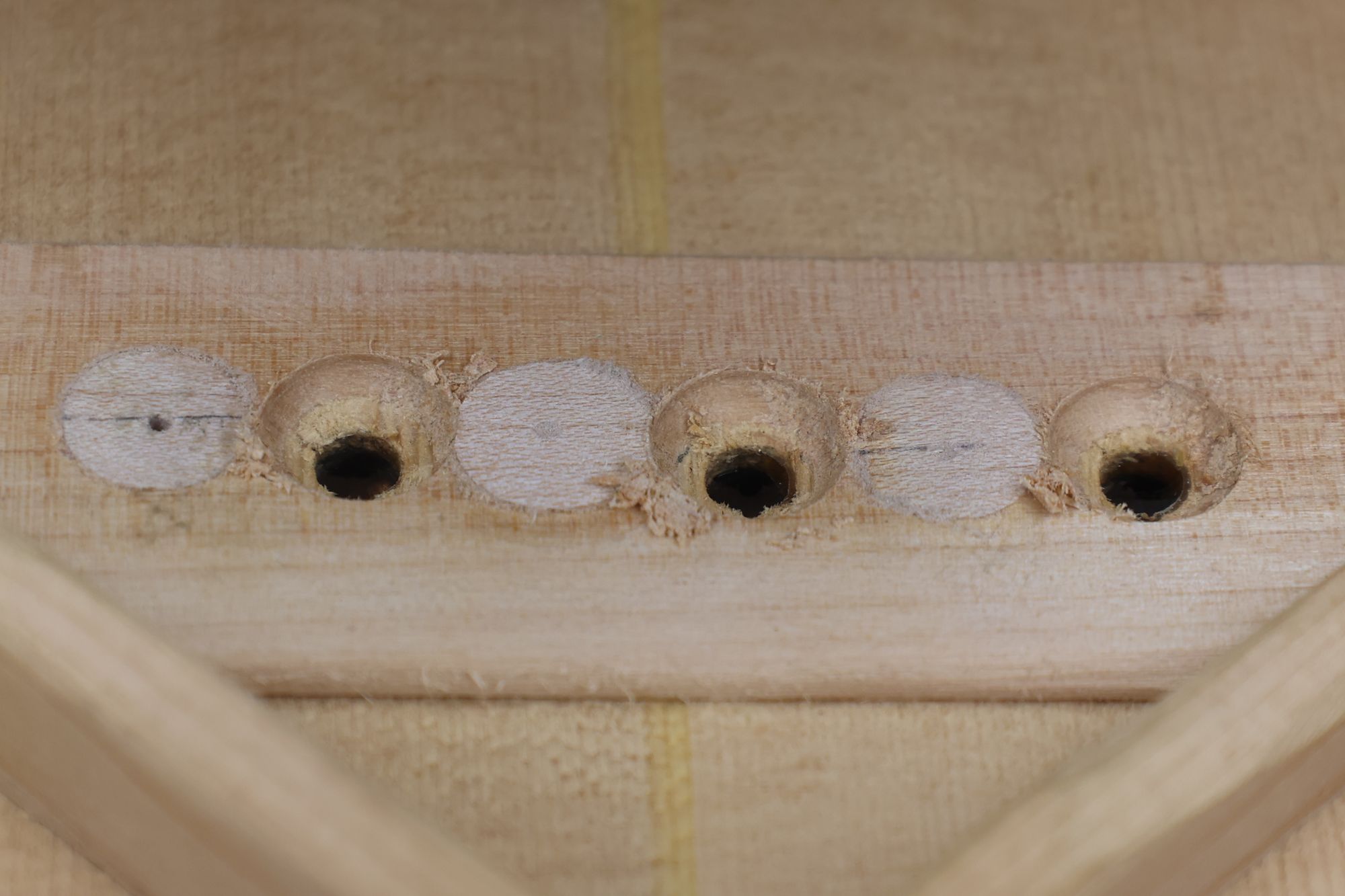 - 5.小穴があいたプラグです。まだ材に固定されています。