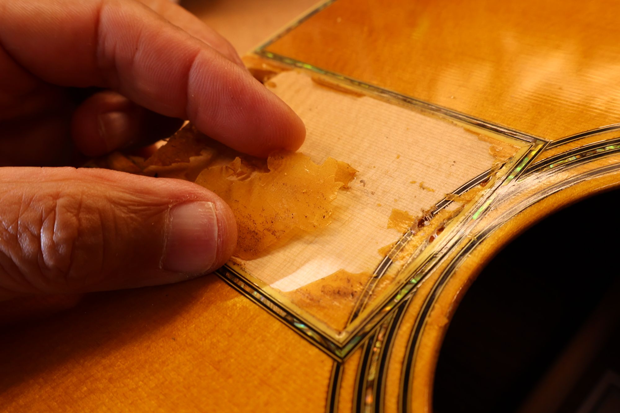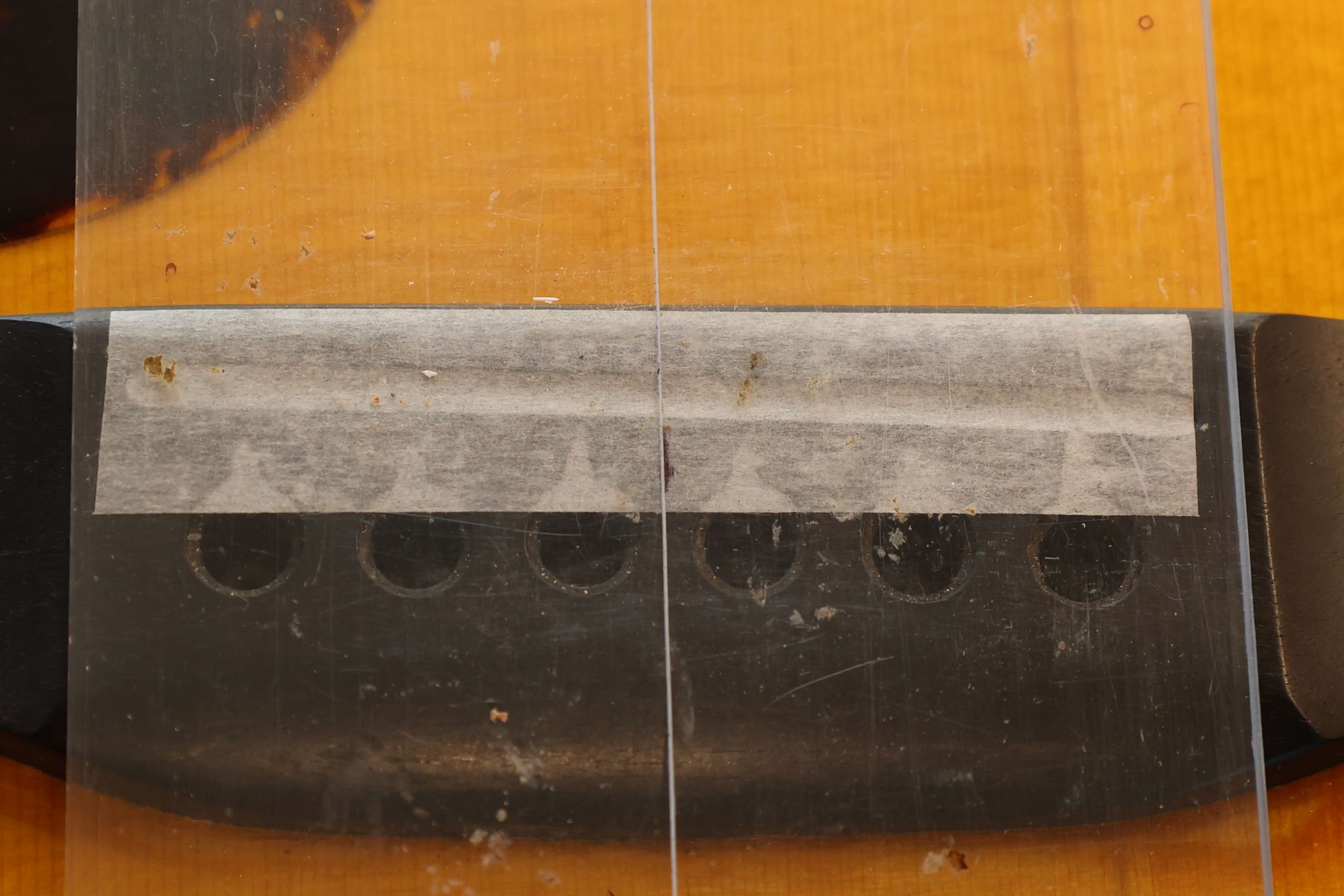 - 17.こちらはフィンガーボード裏の接着剤跡です。