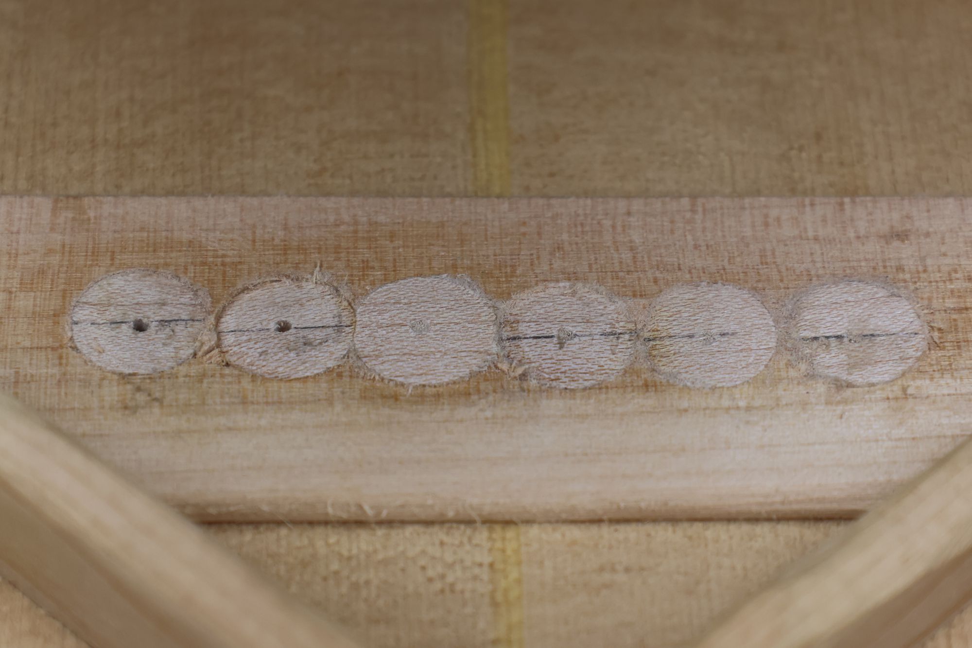 - 12.同様にして3,5弦の凹み加工も行いました。