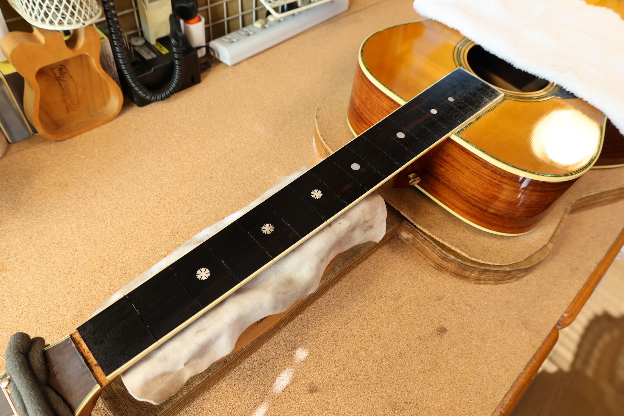 - ネックジョイント部をクリーニングしている様子です。