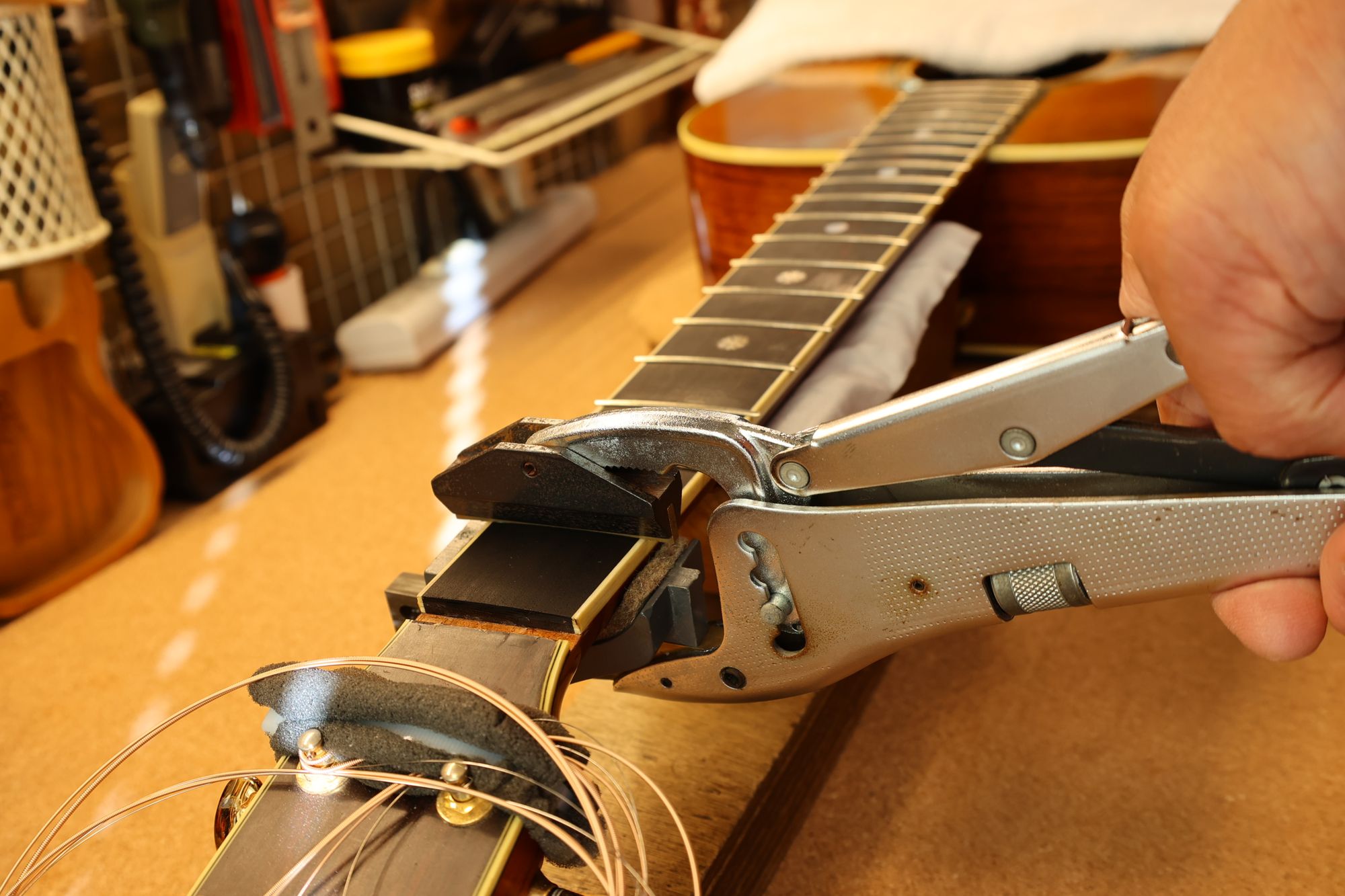 - フレットを抜いている様子です。