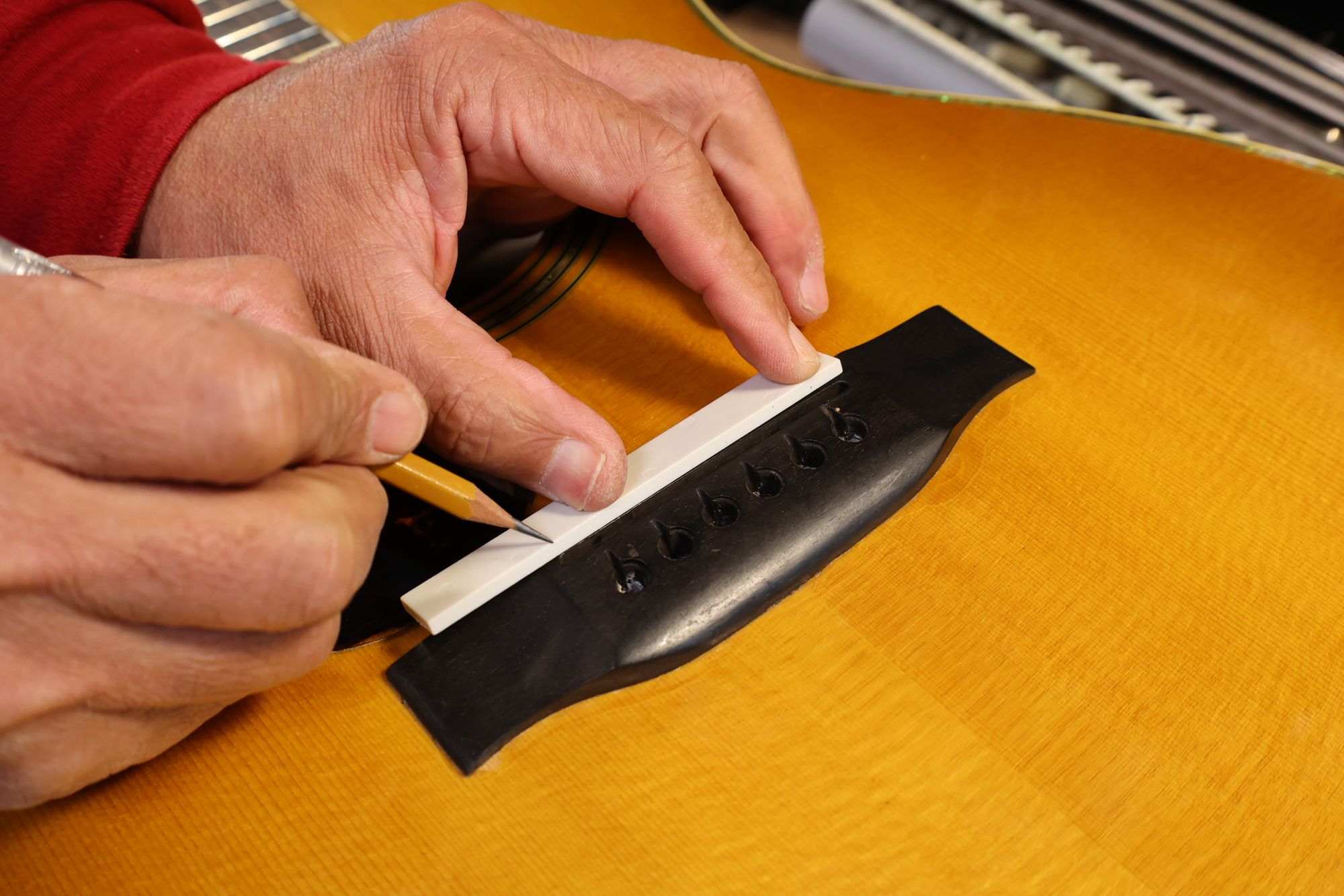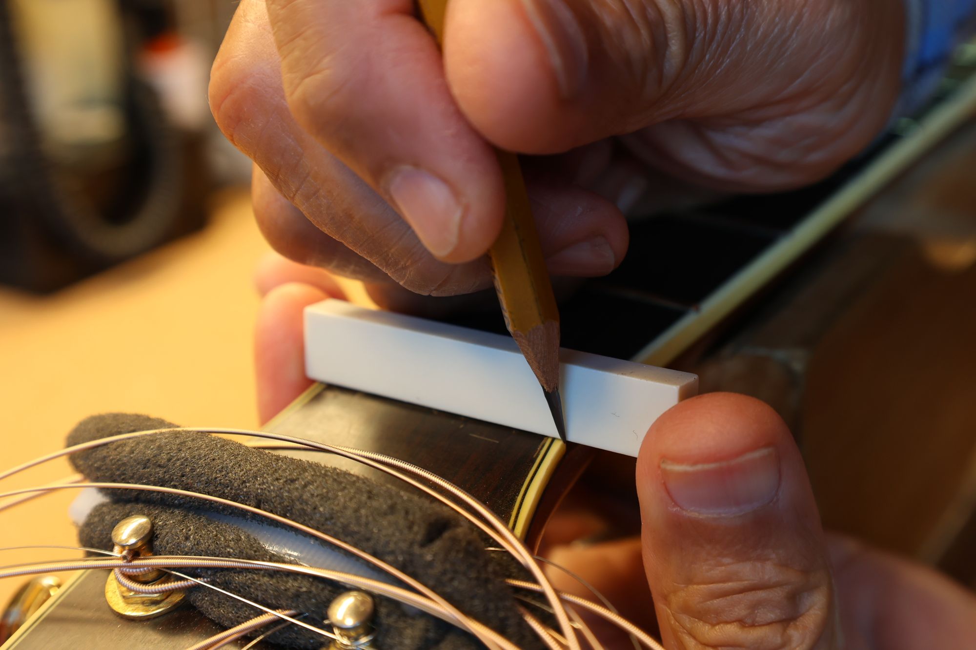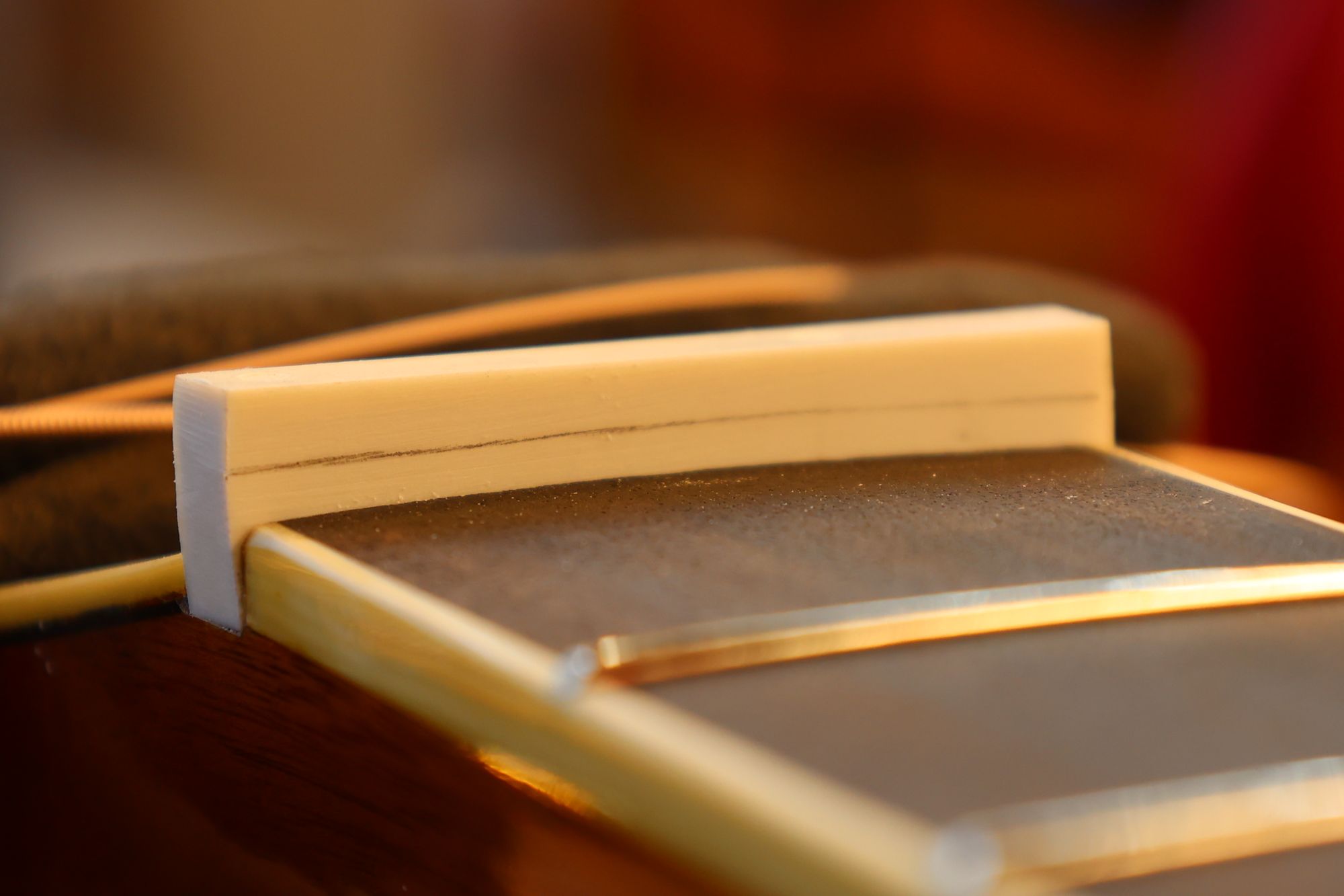 - 18.弦溝位置を新しいナットに書き込みます。