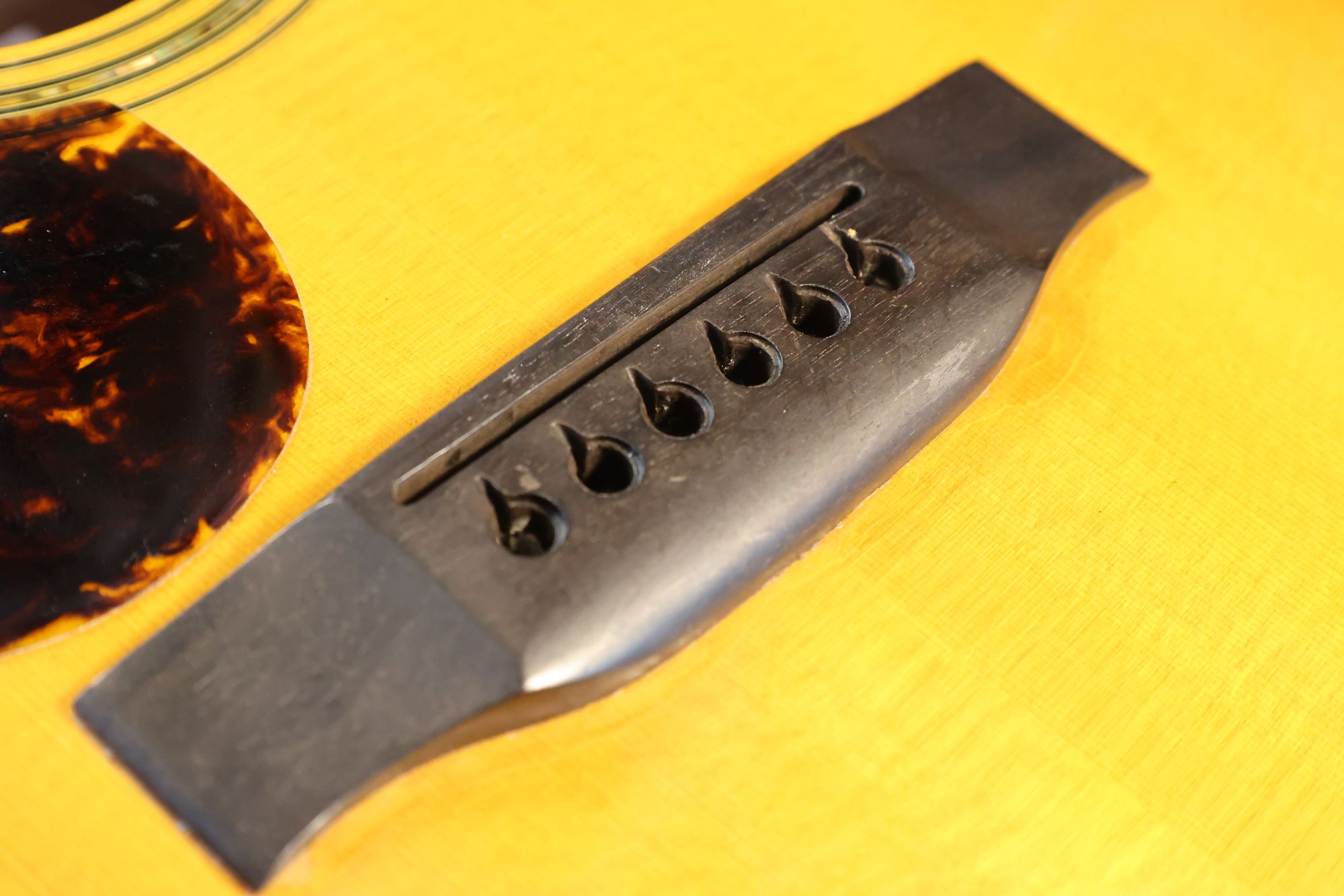 OM-42のリペアご依頼をいただき、ネックリセット、フレット交換、ブリッジプレート・リペアなどを含むトータルリペアを行いました。