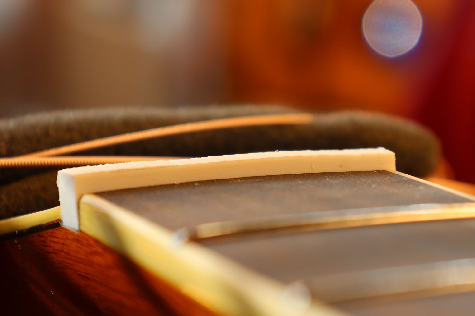 - 26.ナットと弦の接触面積と角度を最適化することによってギターの音色は大きく変わります。