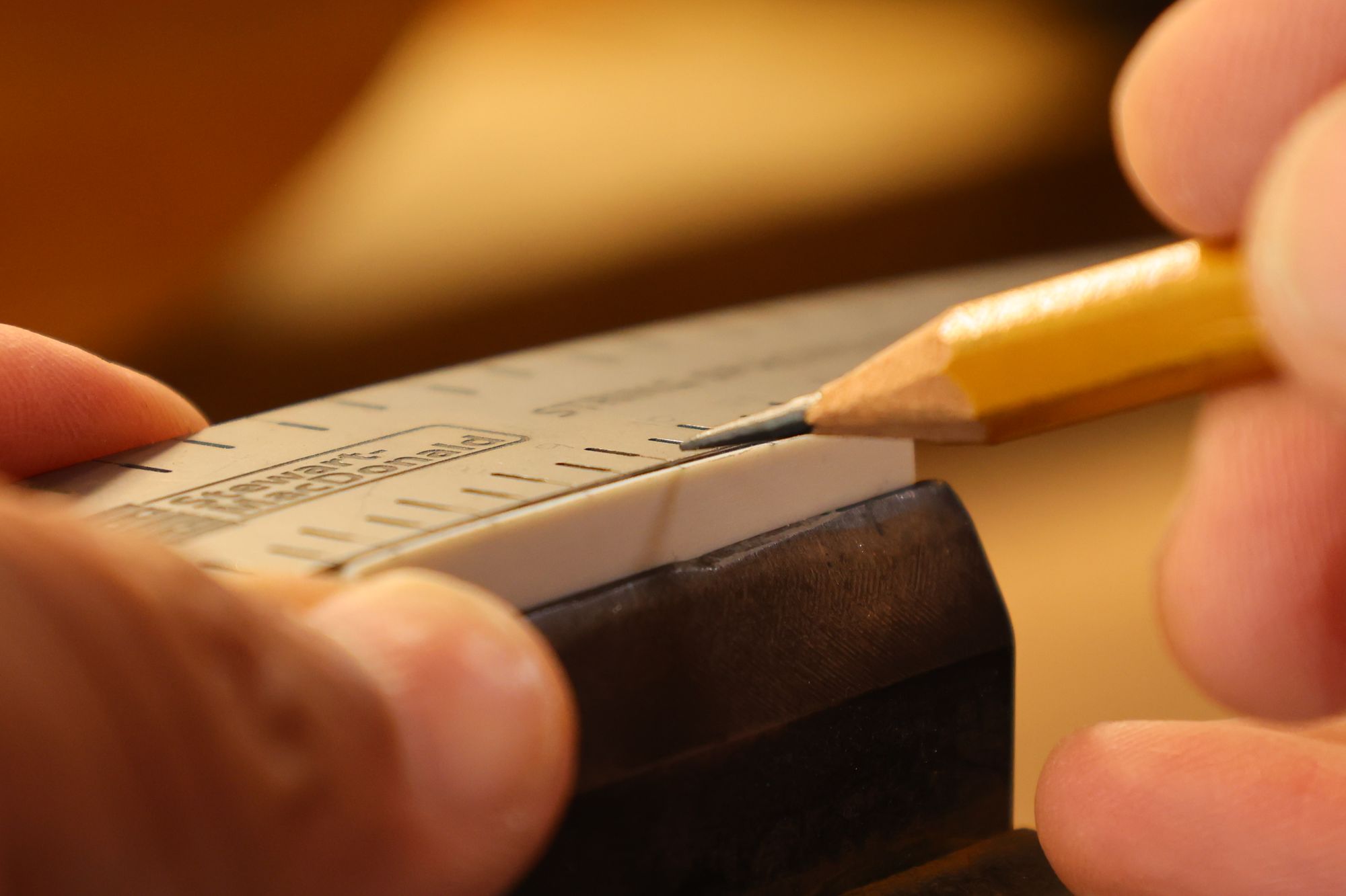 - 13.フレットの高さに合わせてケガキ線を入れます。