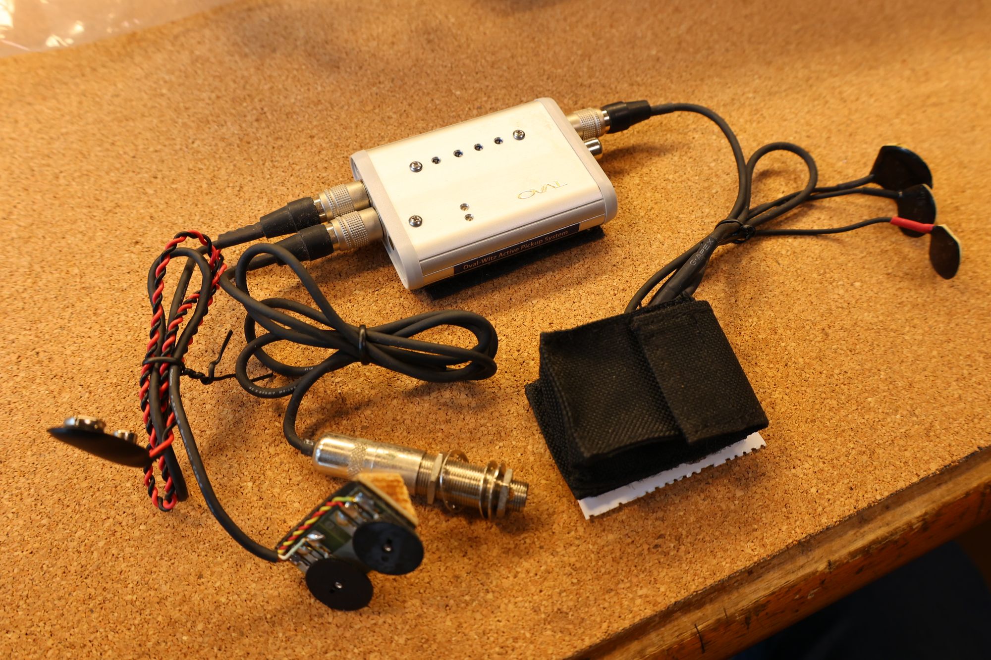 - 1.オリジナルピックアップです。ブリッジプレートに3つのコンタクトピックアップが接着されています。